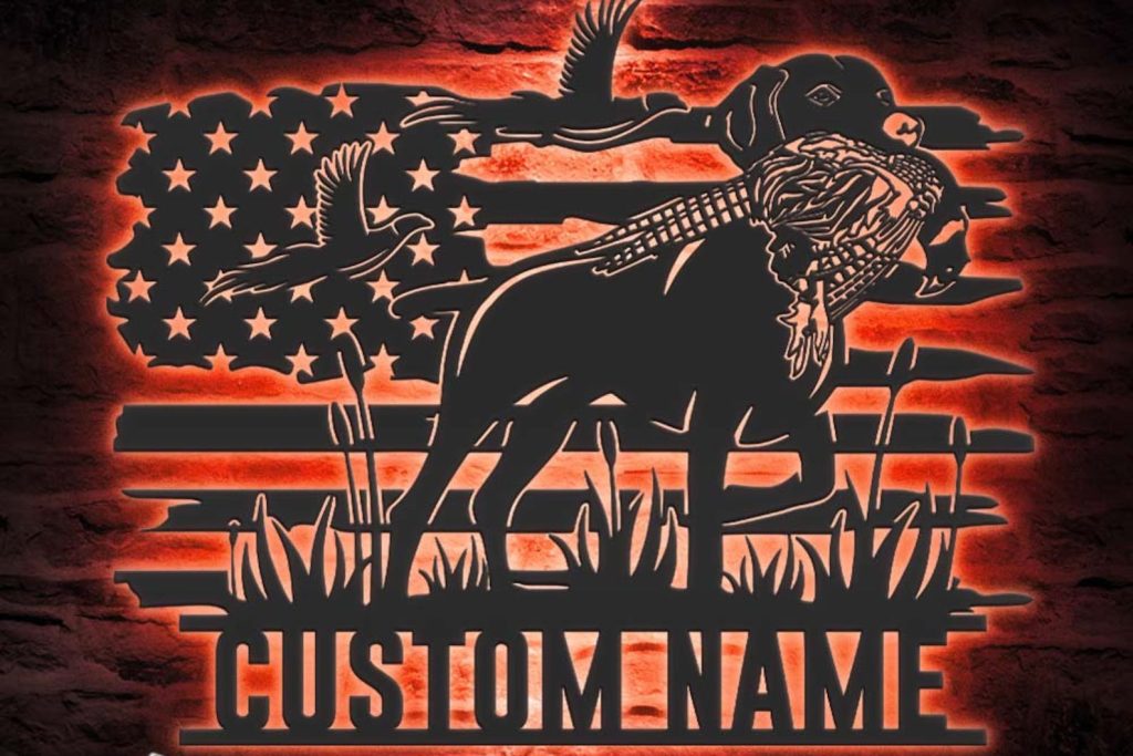 Be the first to review “Custom Pheasant Vizsla LED Metal Art – Hunter Name Sign”