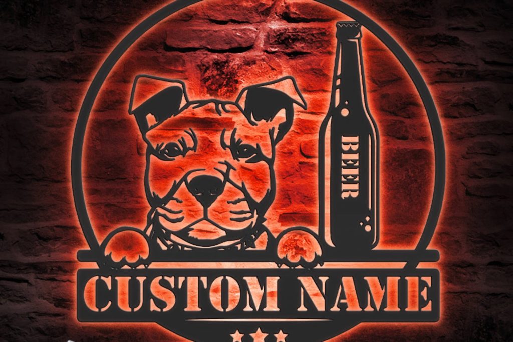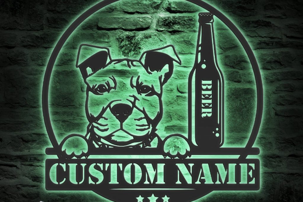Be the first to review “Custom Pitbull Beer Bar Metal Wall Art – LED Light, Personalized Sign”