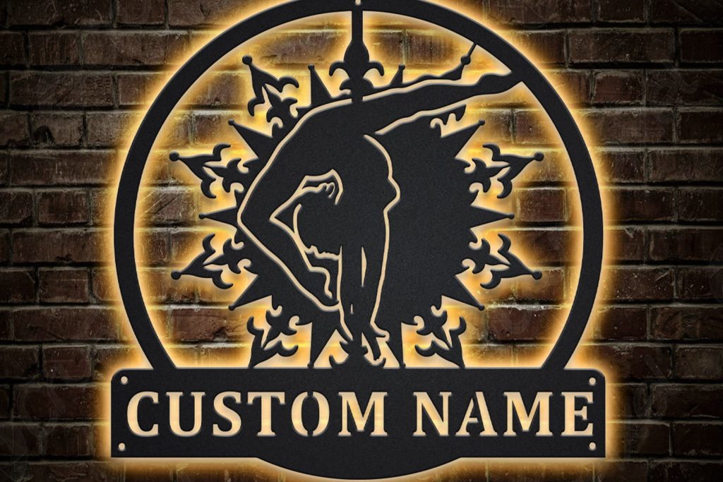 Be the first to review “Custom Pole Dance Metal Sign with LED Lights V8”