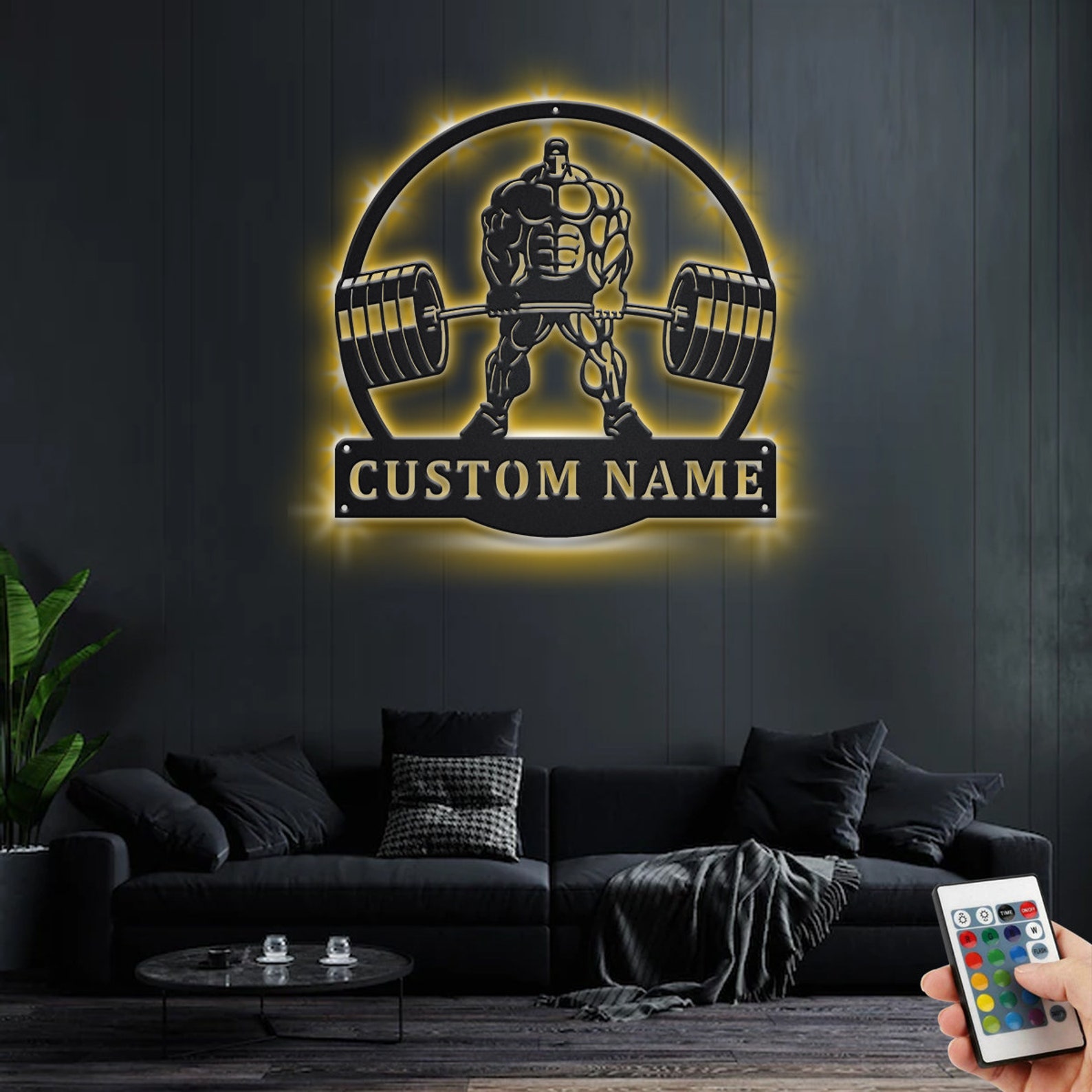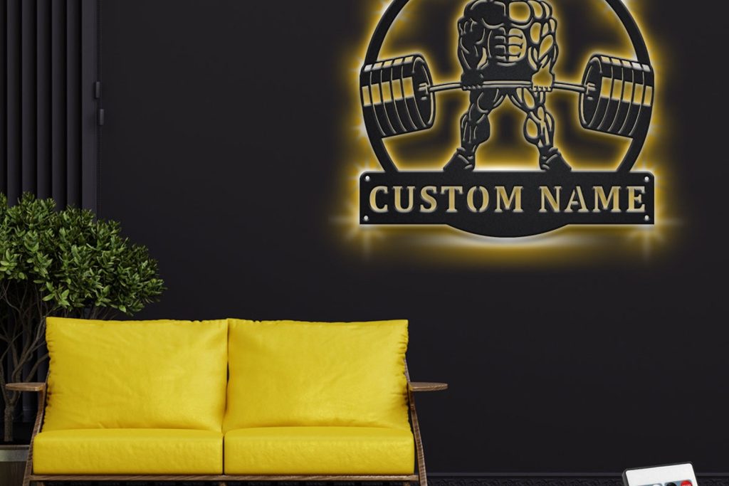 Custom Powerlifting Man Metal Sign with LED – Room Decor