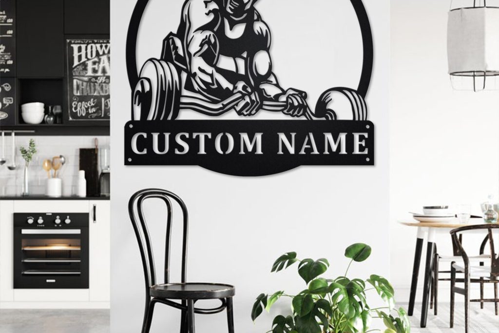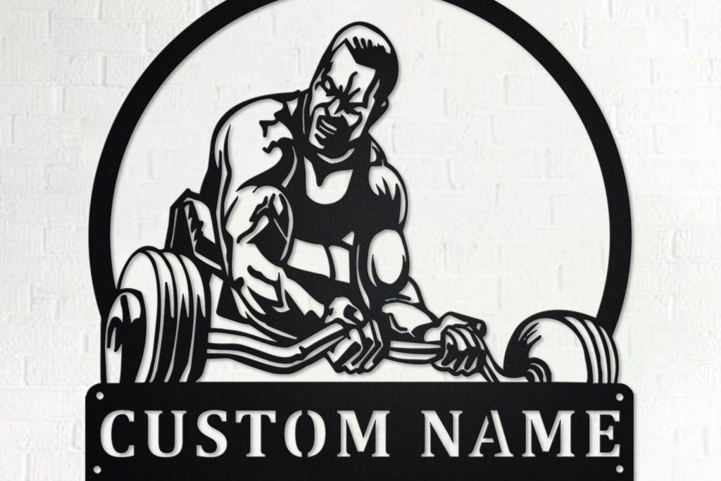 Custom Powerlifting Man Metal Sign with LED – Room Decor
