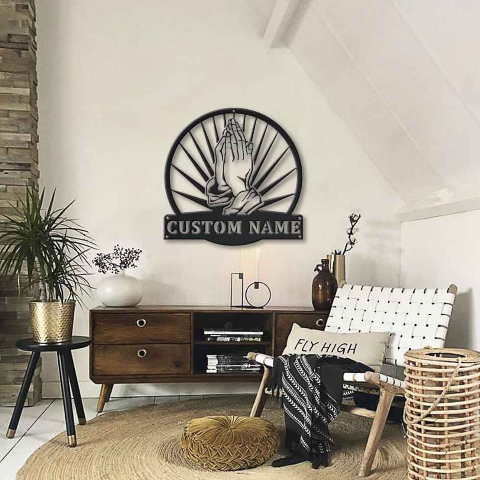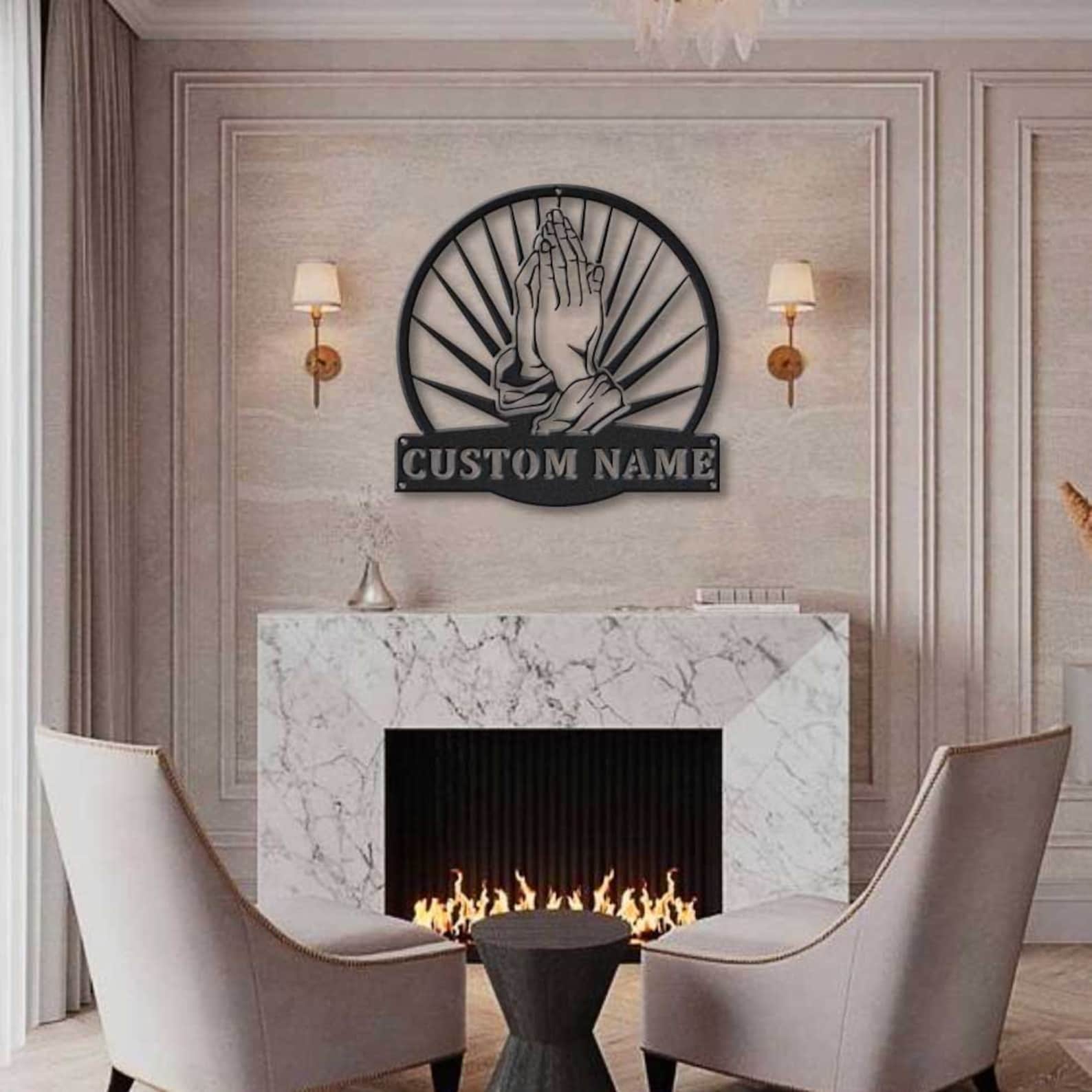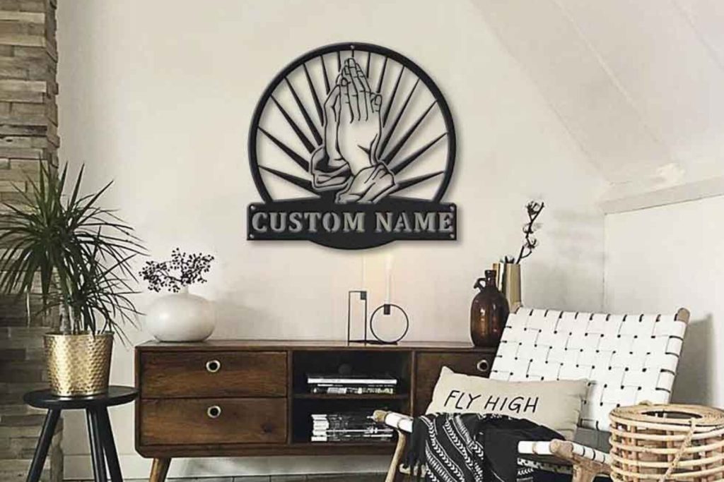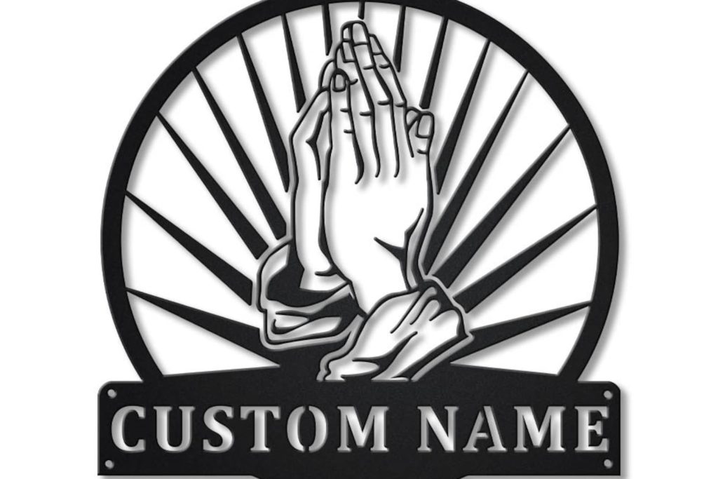 Be the first to review “Custom Prayer Hands Monogram Metal Sign”