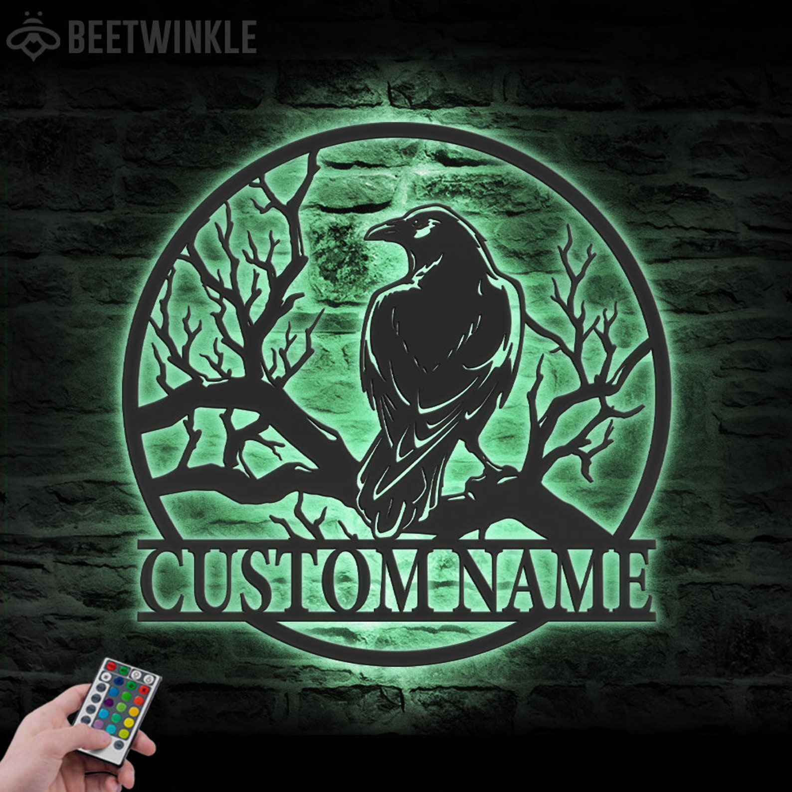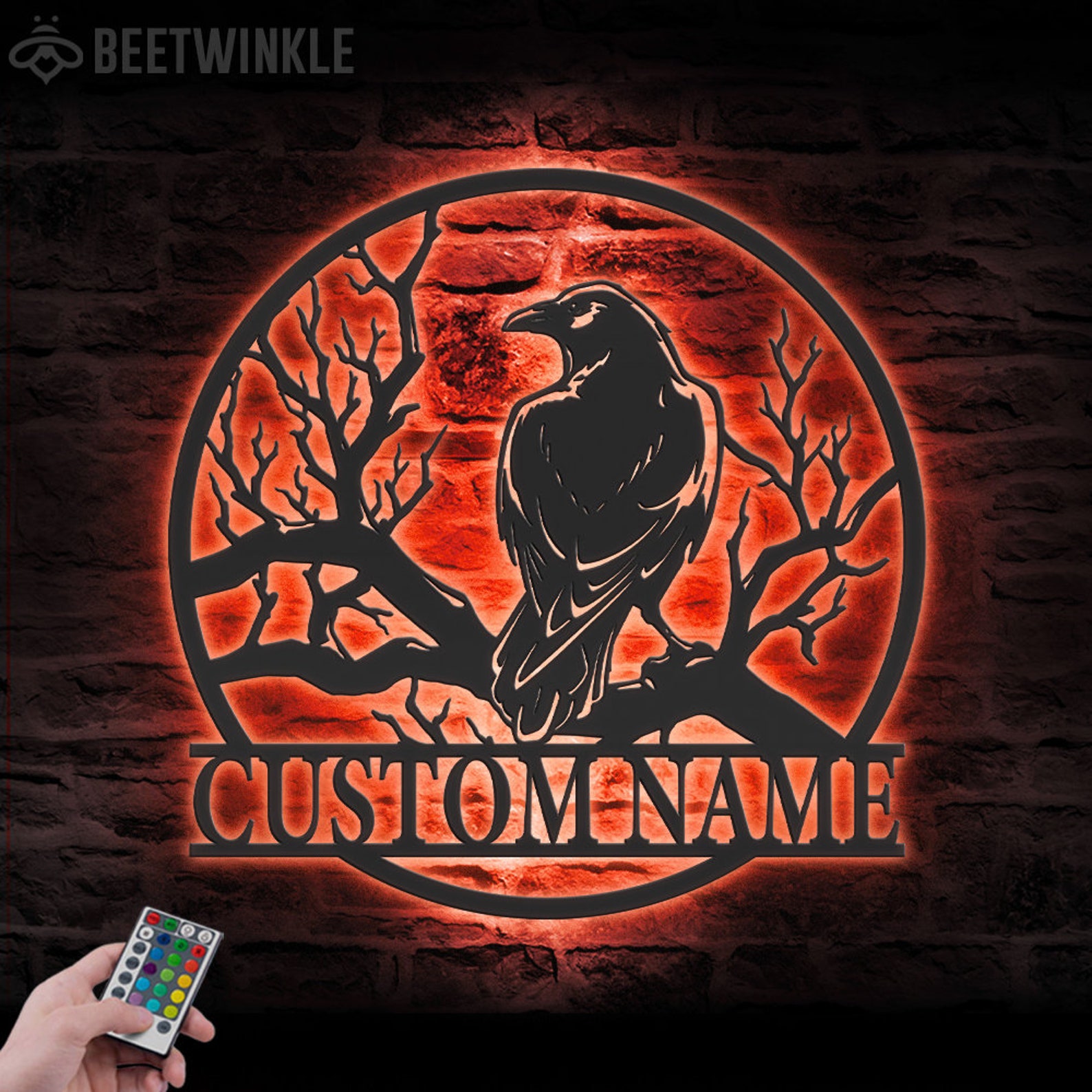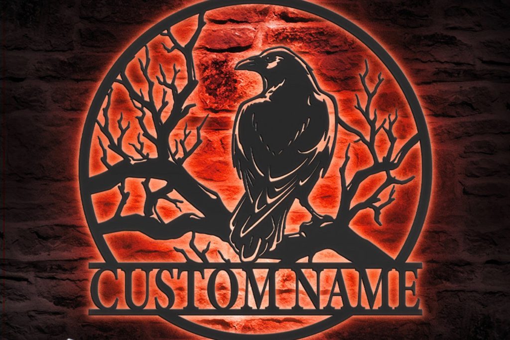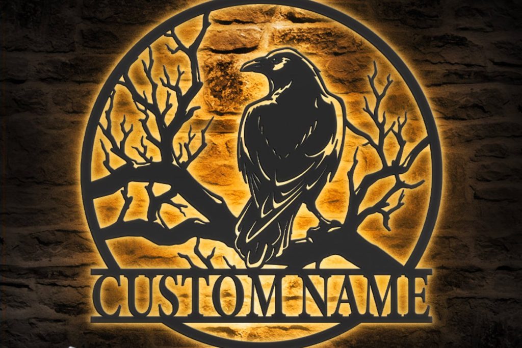 Be the first to review “Custom Raven Metal Wall Art – LED Light, Personalized Crow Moon Sign”