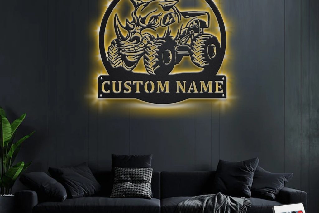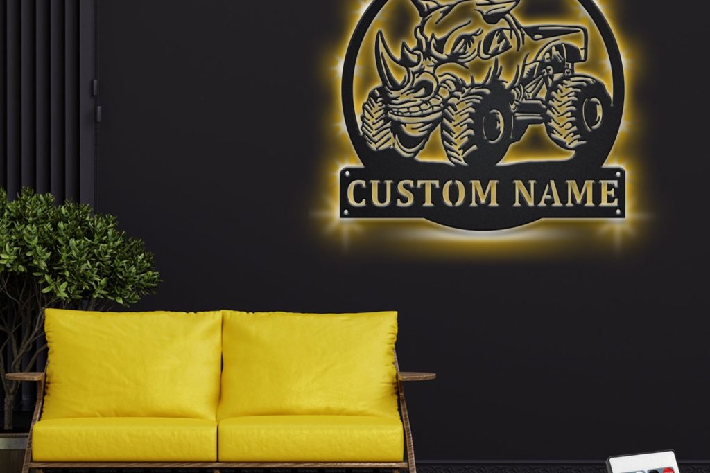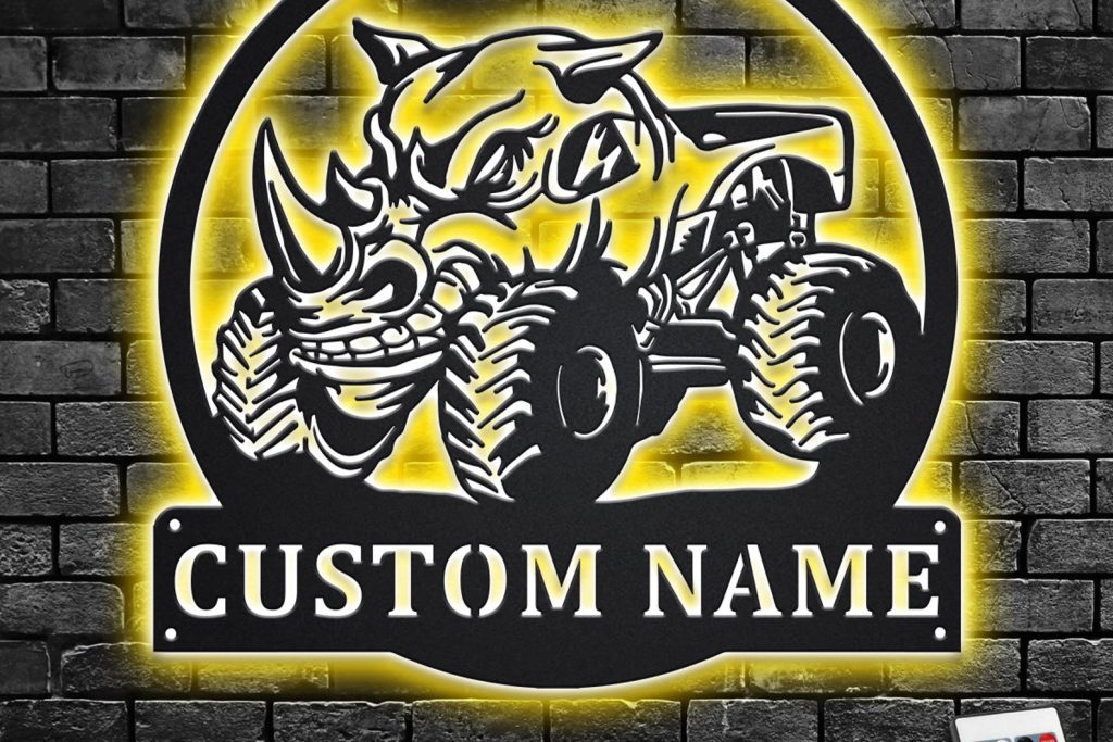 Be the first to review “Custom Rhino Monster Truck Metal Art with LED Light”