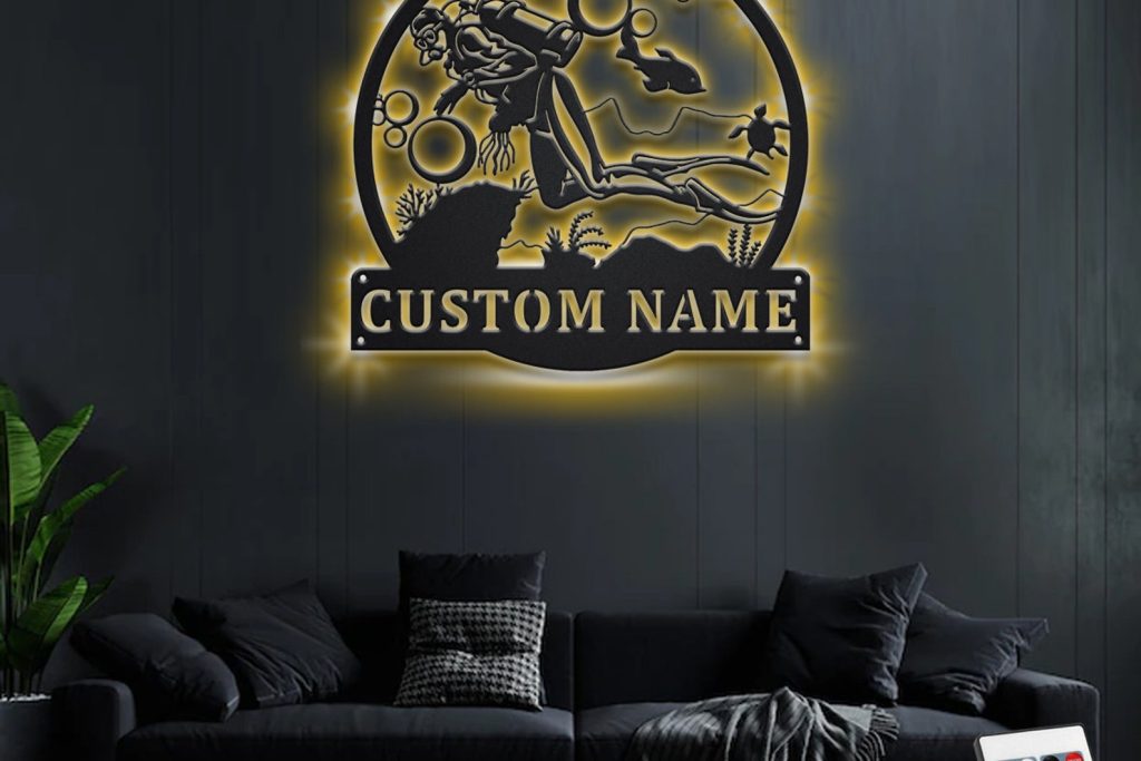 Be the first to review “Custom Scuba Diver Metal Art with LED Light”