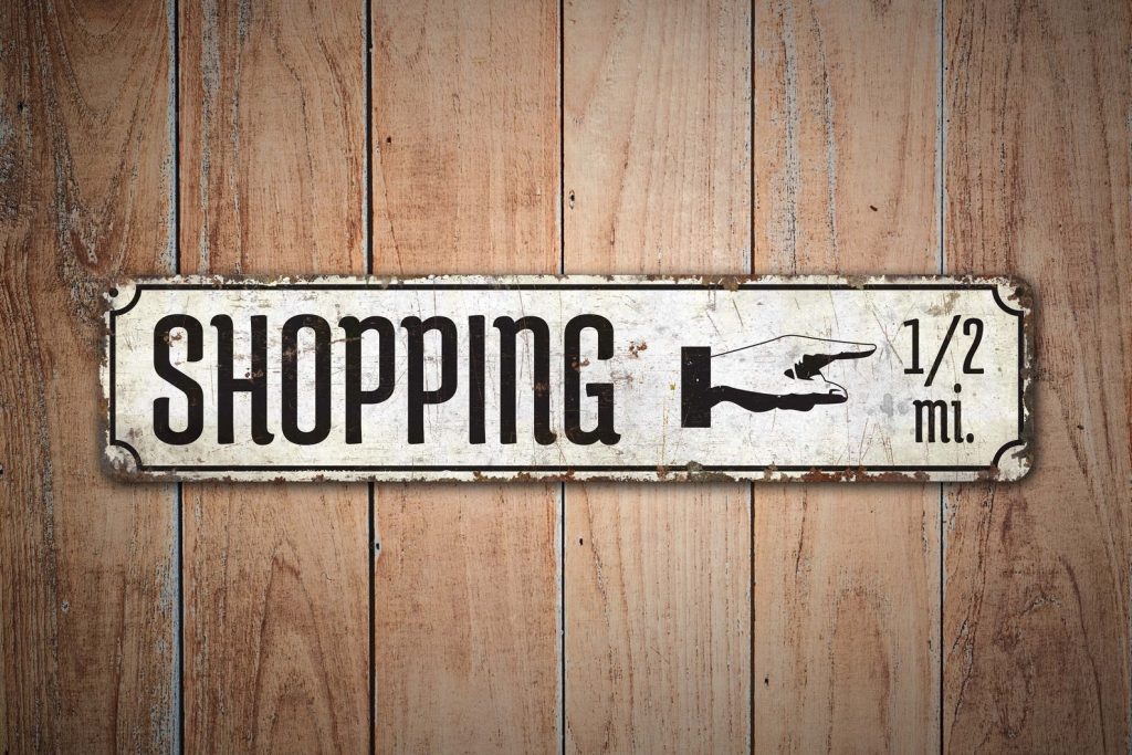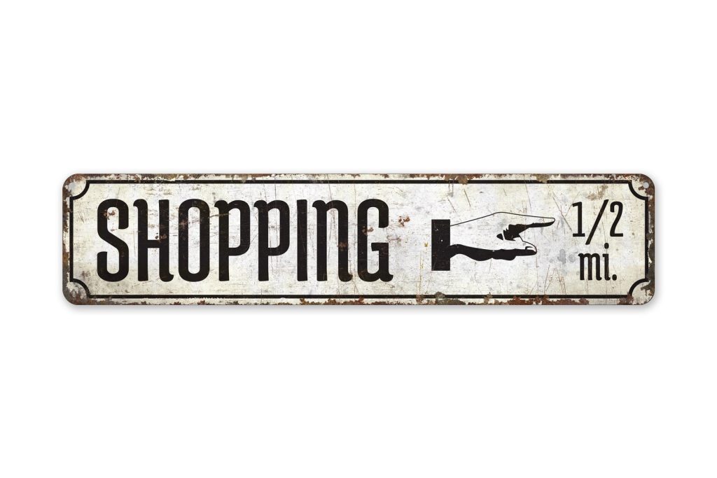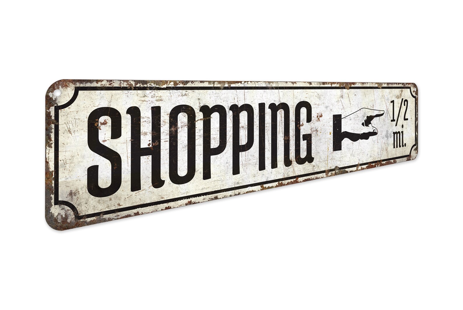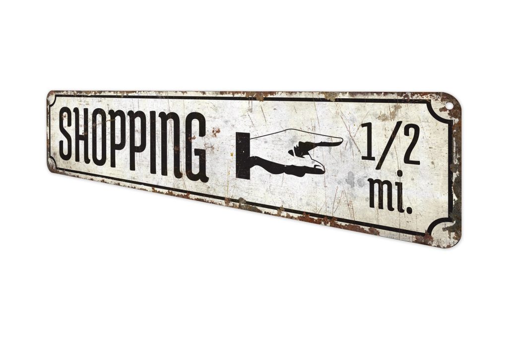 Custom Shopping Sign – Shopping Sign – Shopping Direction – Vintage Style Sign – Shop Half Mile – Premium Quality Rustic Metal Sign