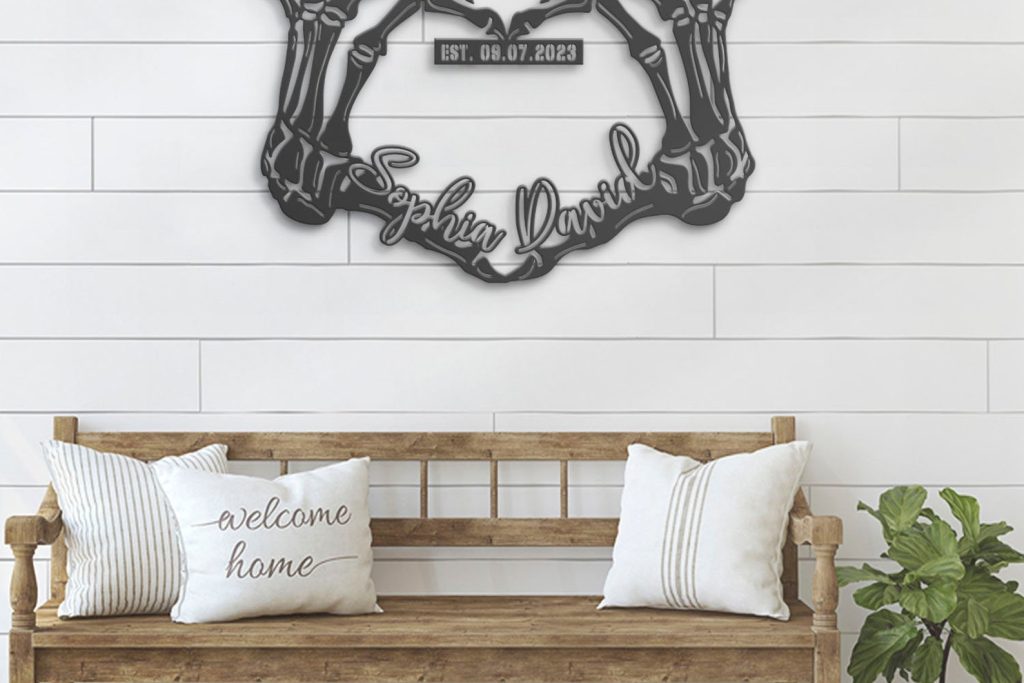 Custom Skeleton Hand Heart Metal Sign with LED – Halloween