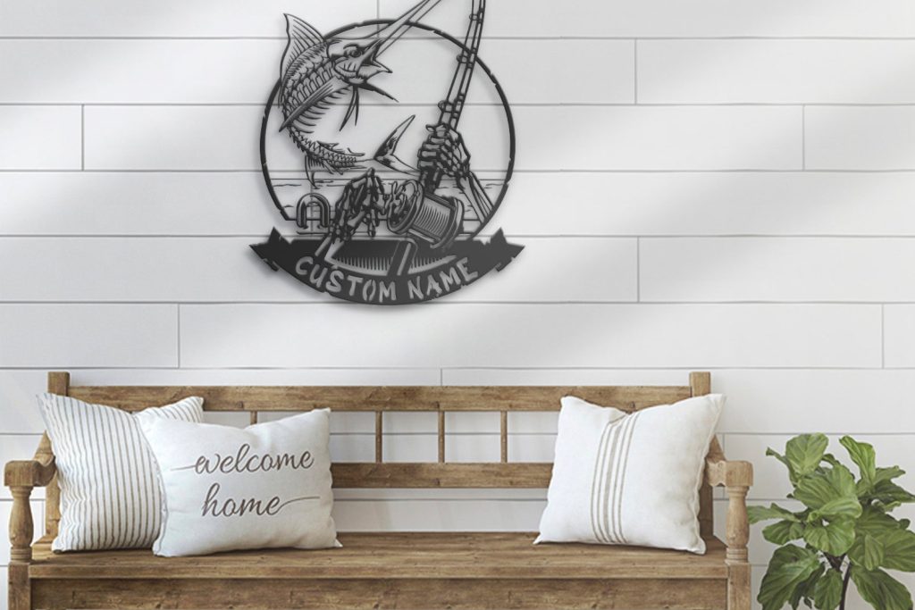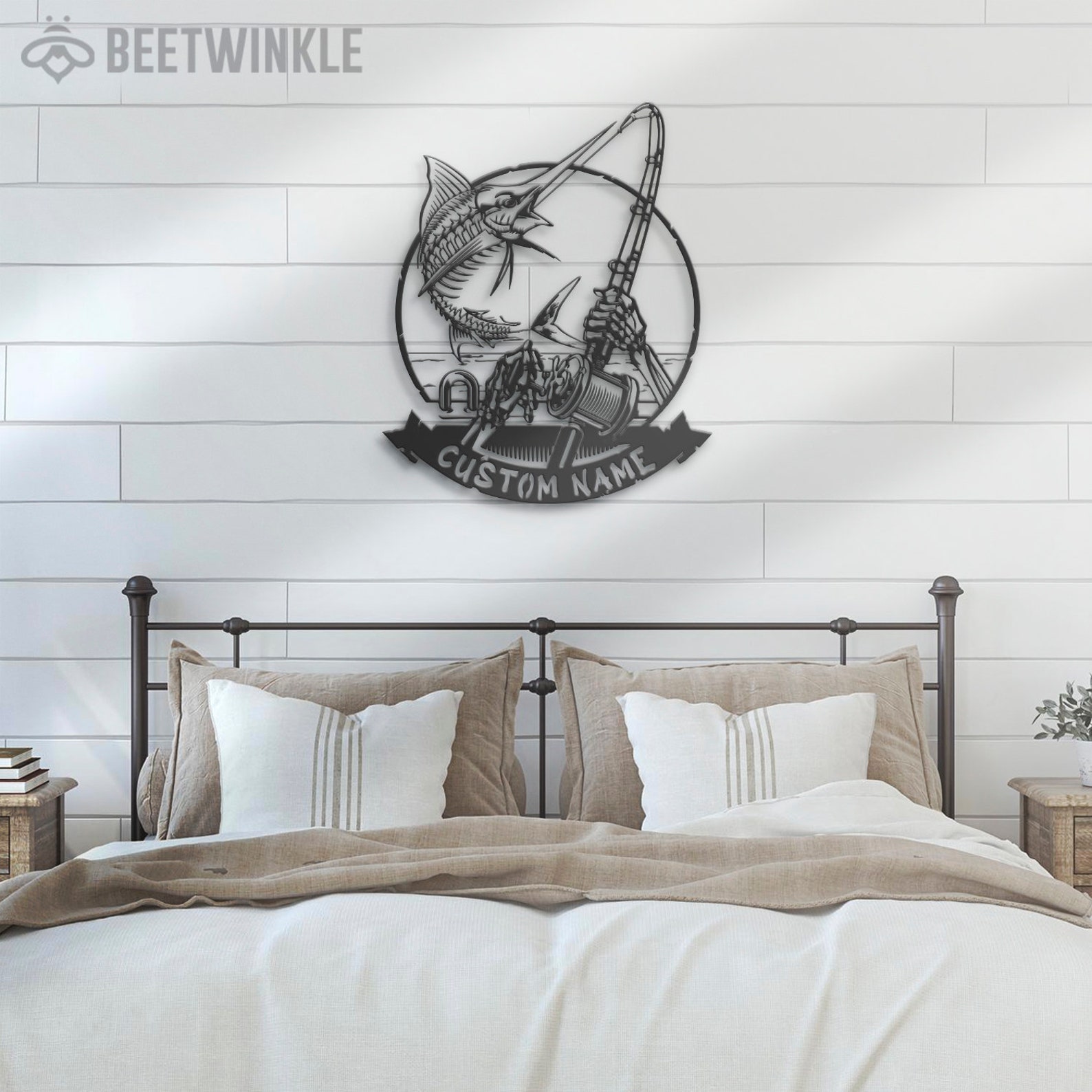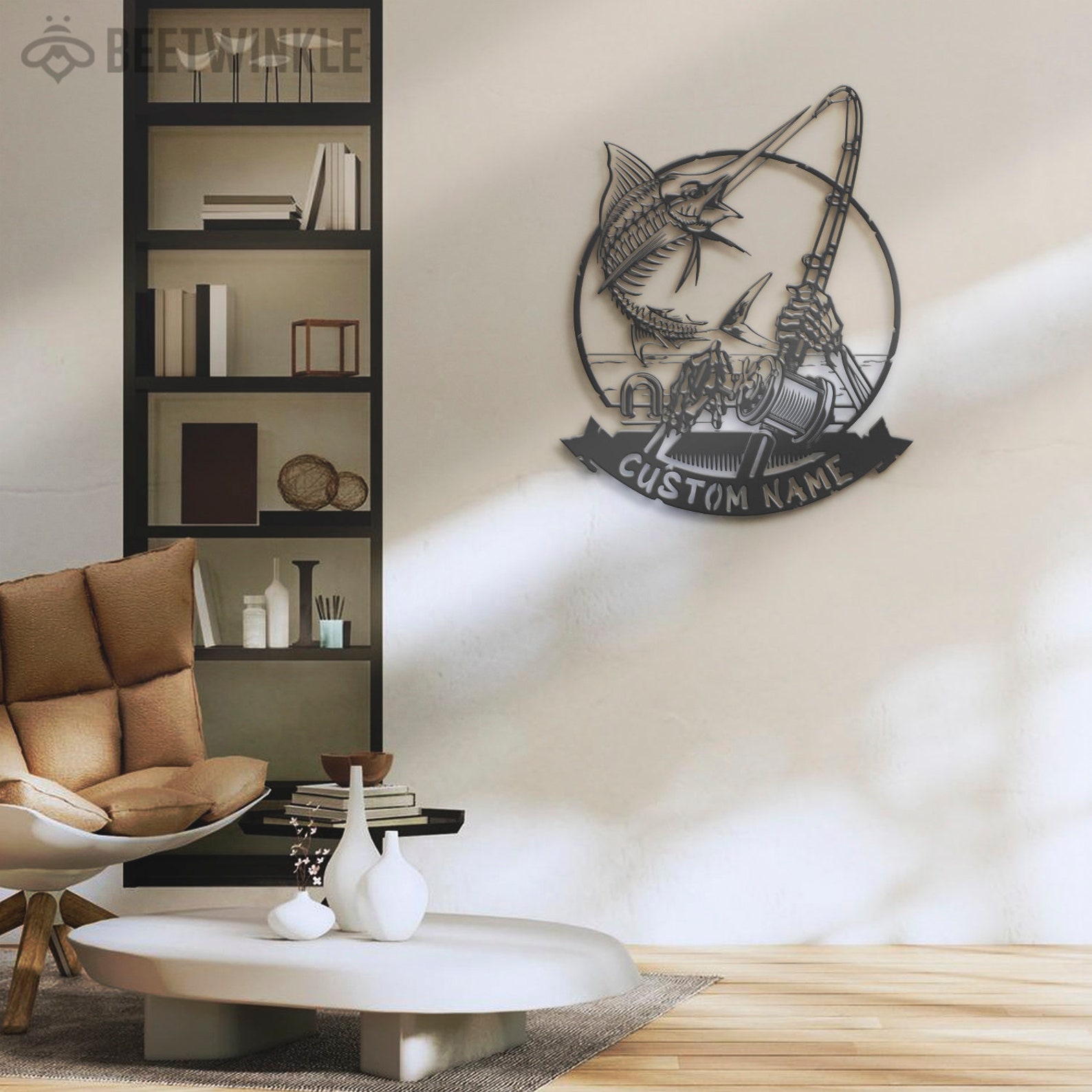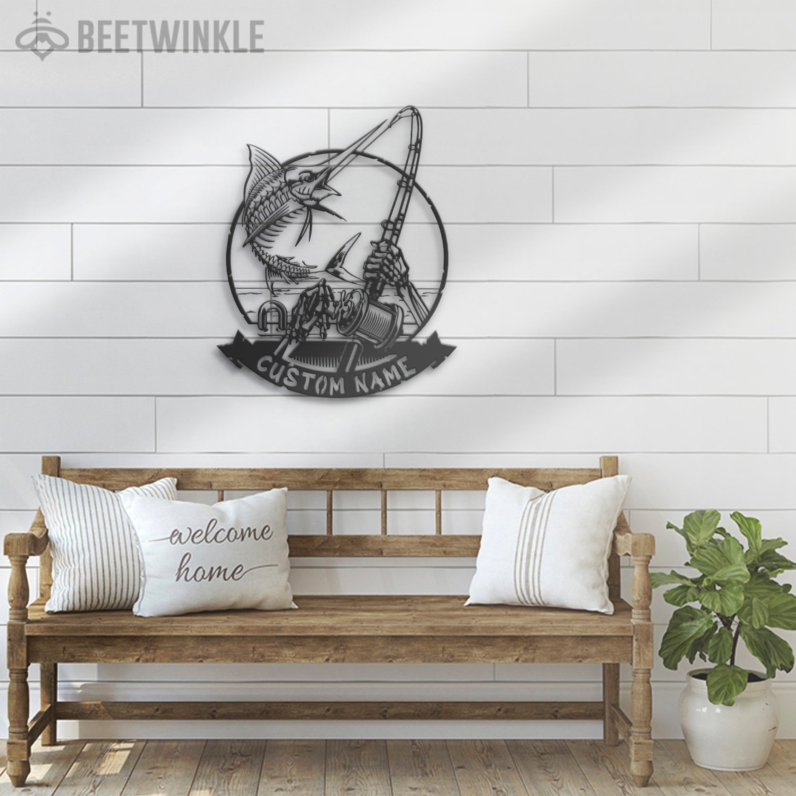 Custom Skeleton Marlin LED Metal Art – Skull Fisher Name Sign