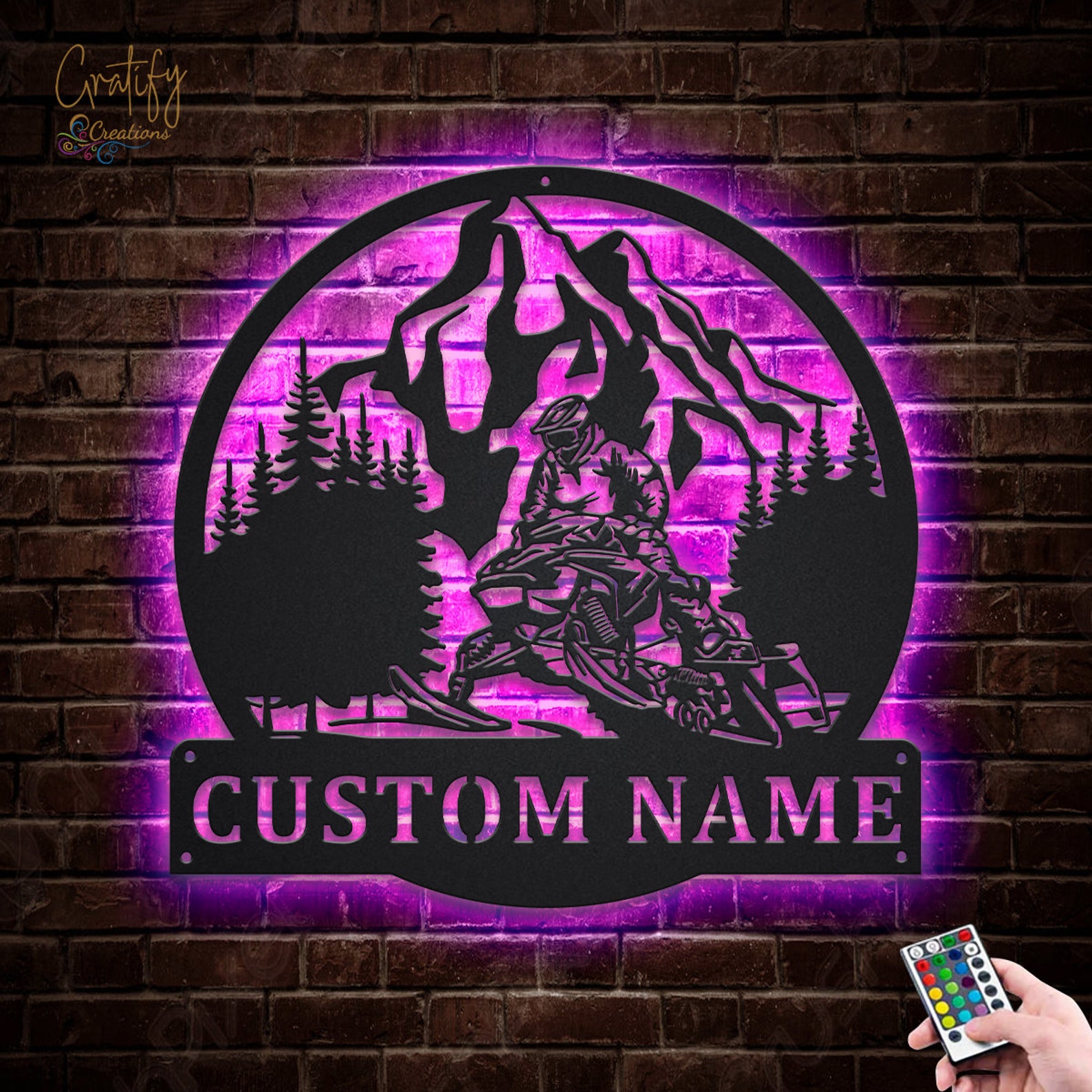 Custom Snowmobile Jump Metal Sign with LED Lights V3