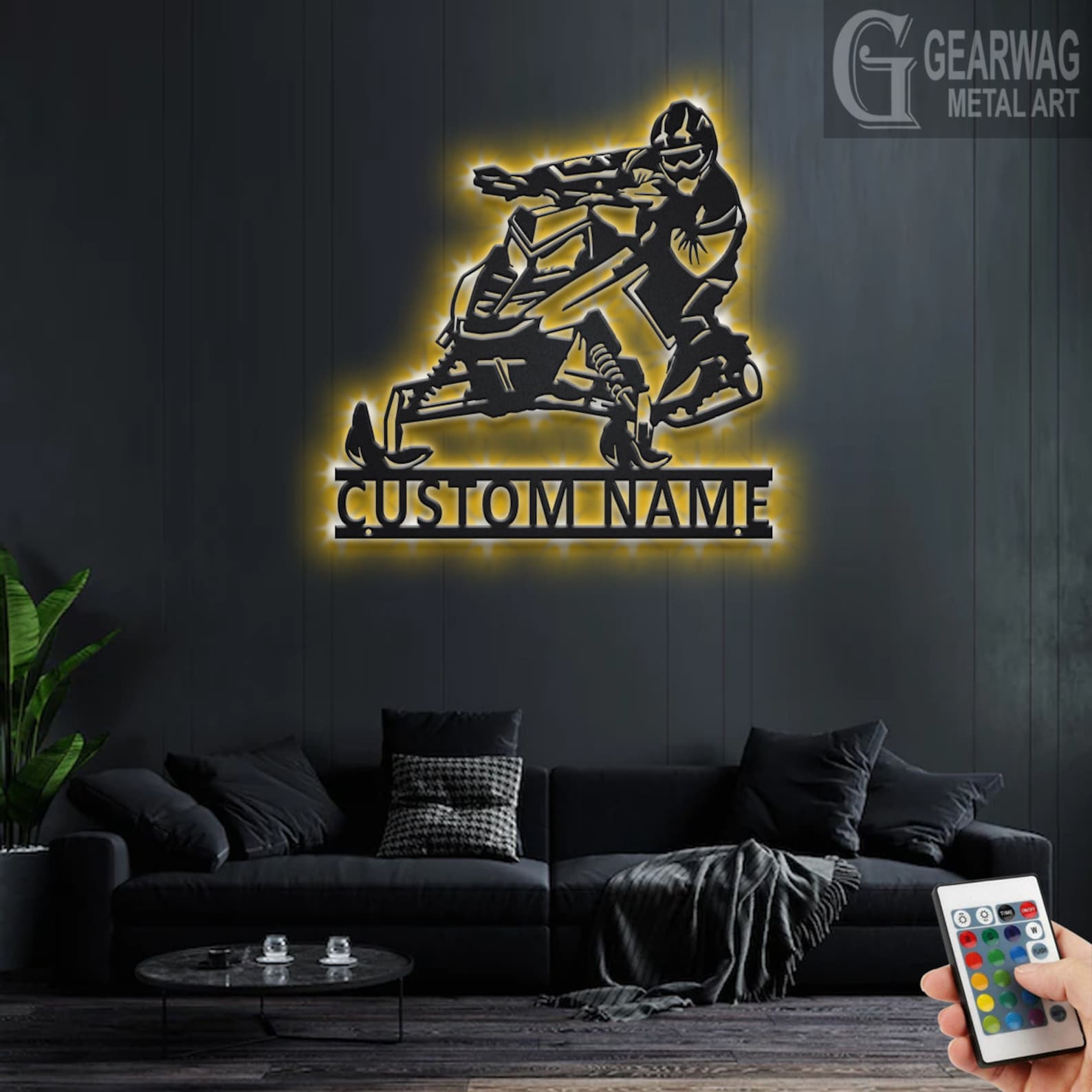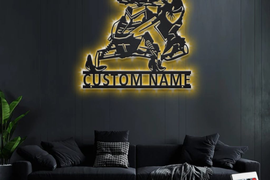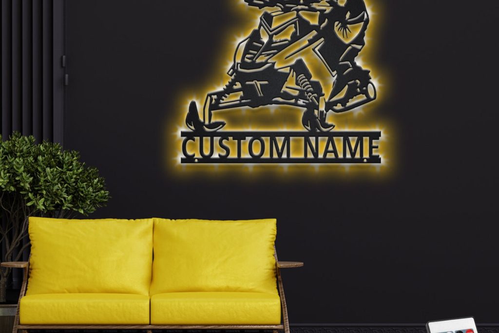 Custom Snowmobile Metal Art with LED, Personalized Sign