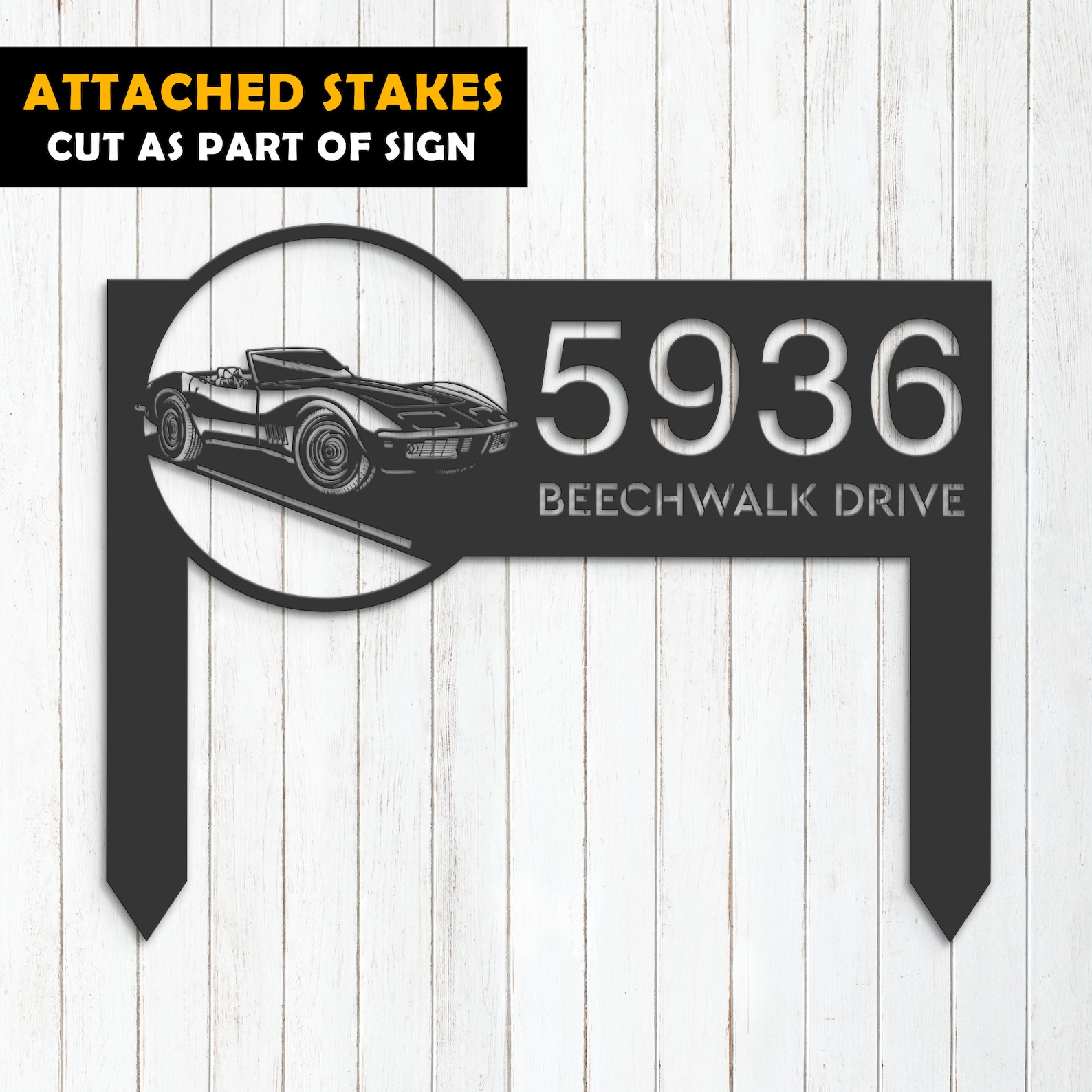 Be the first to review “Custom Sports Car Metal Address Stake”