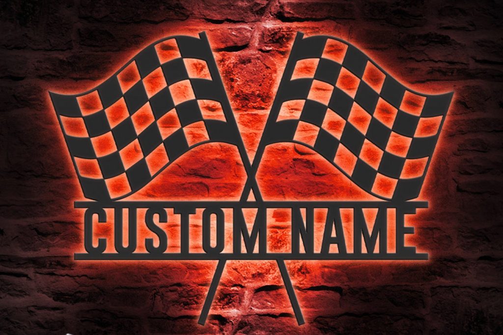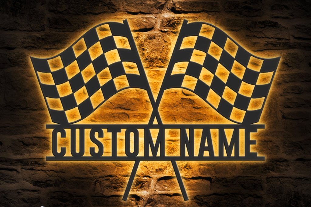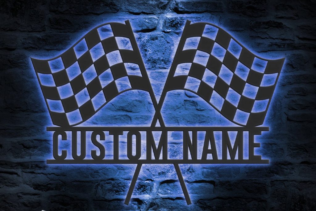 Be the first to review “Custom Start Finish Racing Flag Metal Art with LED Light”