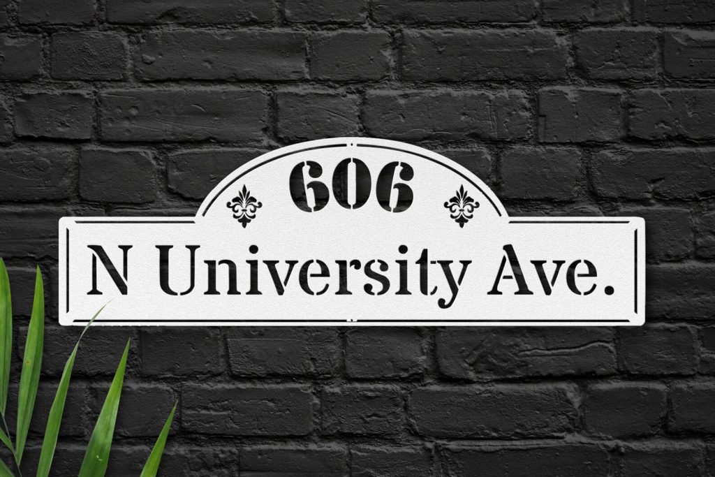 Elevate your home9;s curb appeal with our Metal Address Sign featuring charming Fleur-de-Lis accents. This stylish and durable sign beautifully showcases your address while adding a touch of timeless elegance to your exterior dcor. Make a statement with this classic design, marrying form and function seamlessly.