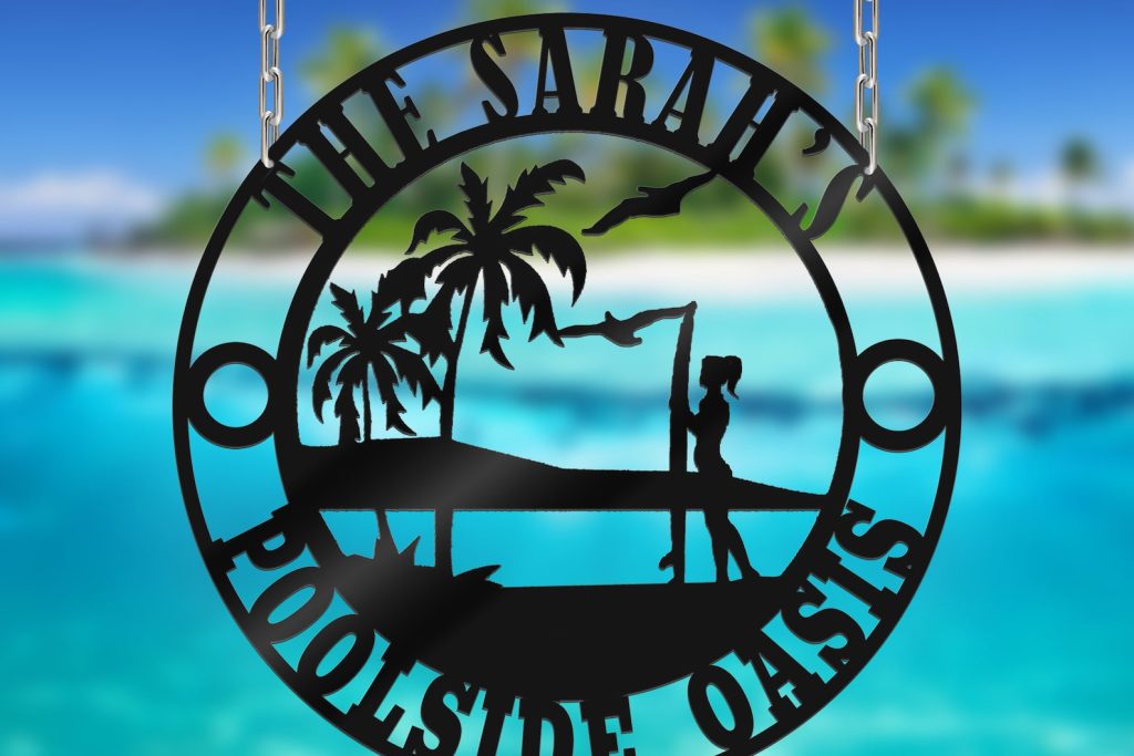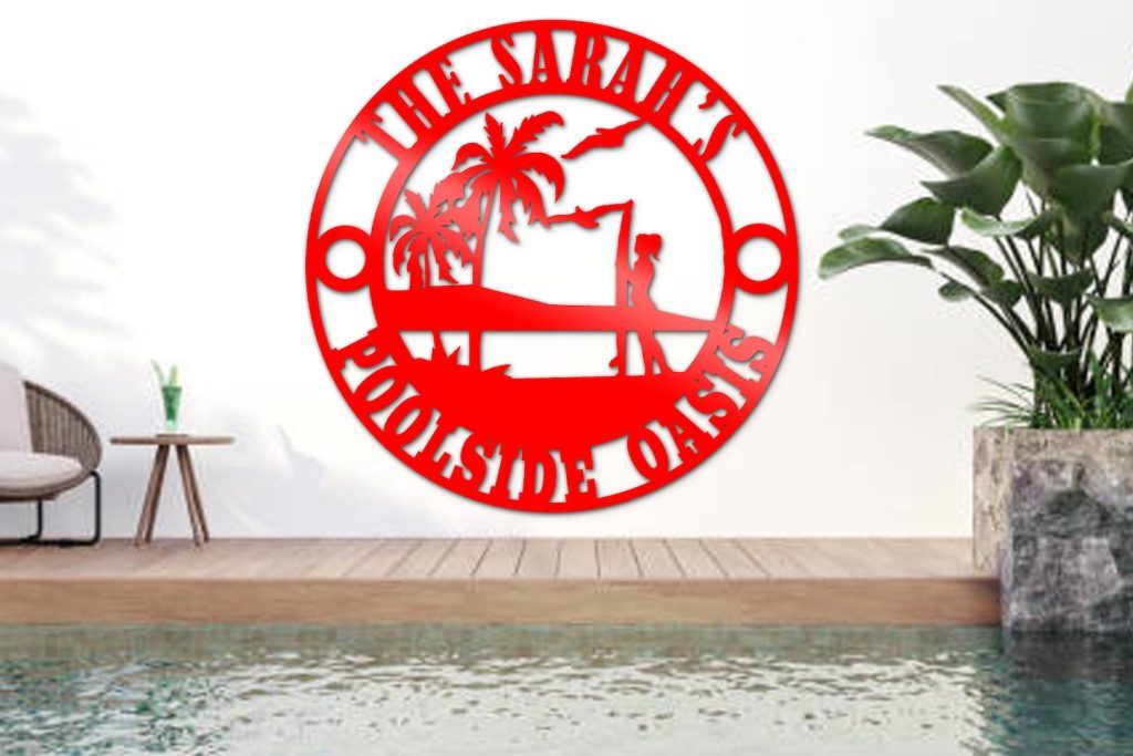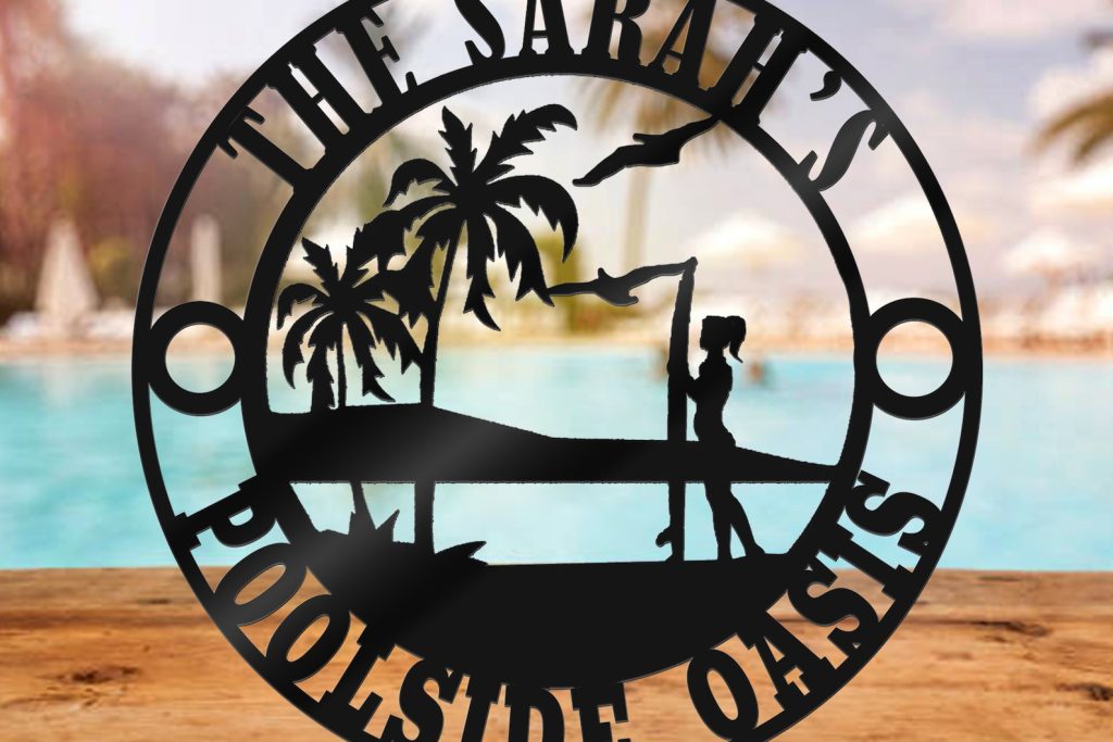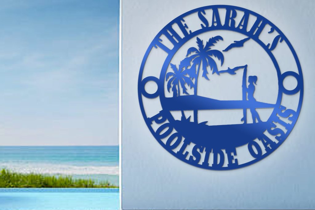 Custom Surfing Metal Sign – Personalized Beach House & Poolside Decor