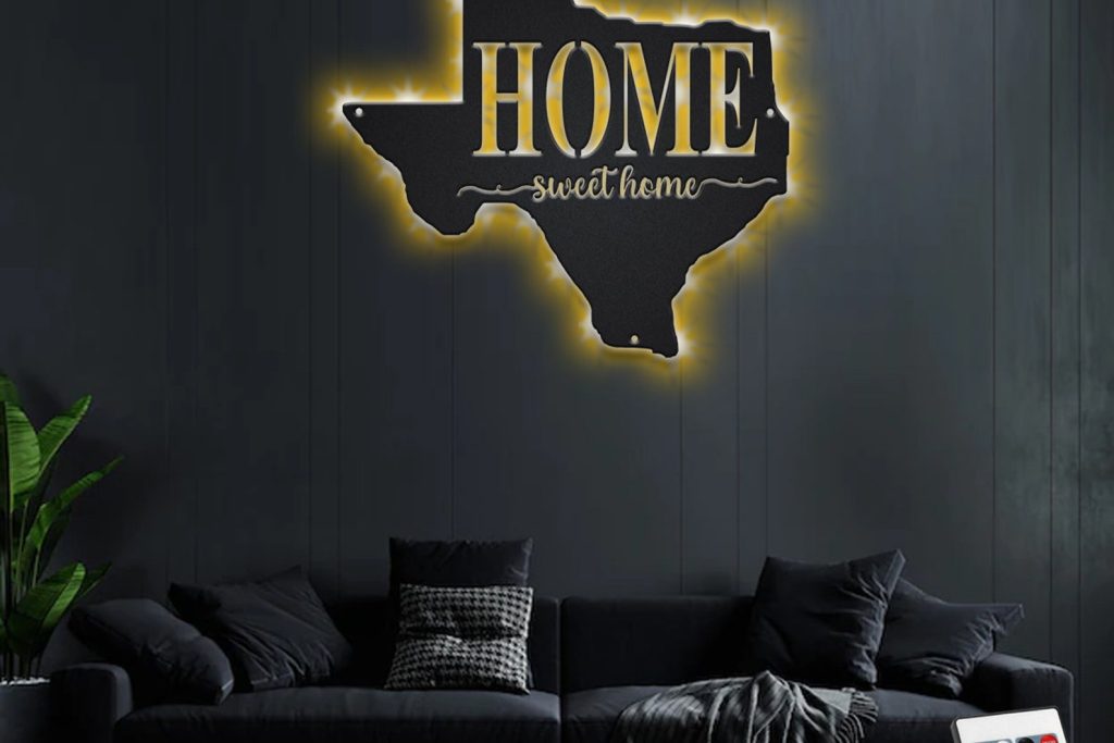 Custom Texas Home Sweet Home Metal Sign with LED – Decor