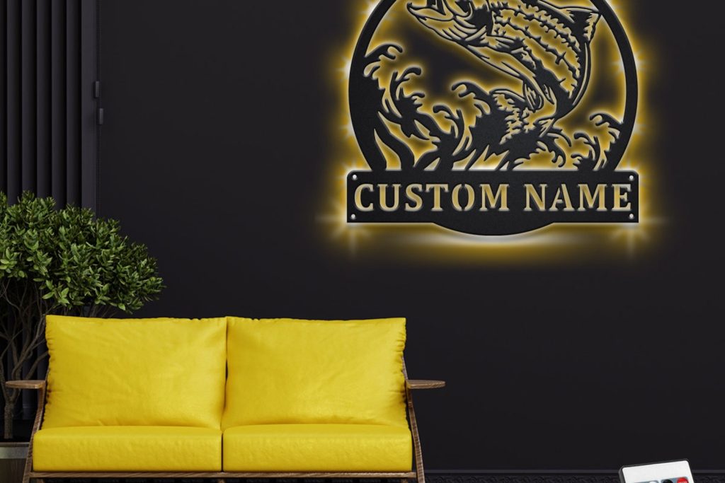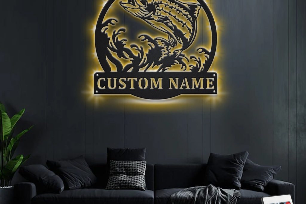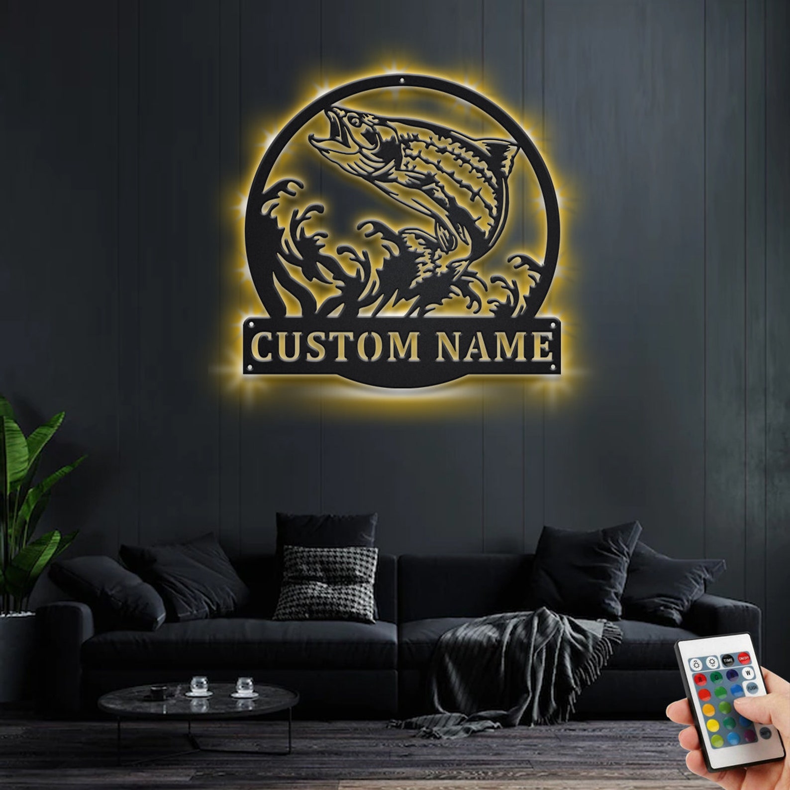 Custom Trout Fish Metal Sign with LED – Fishing Room Decor