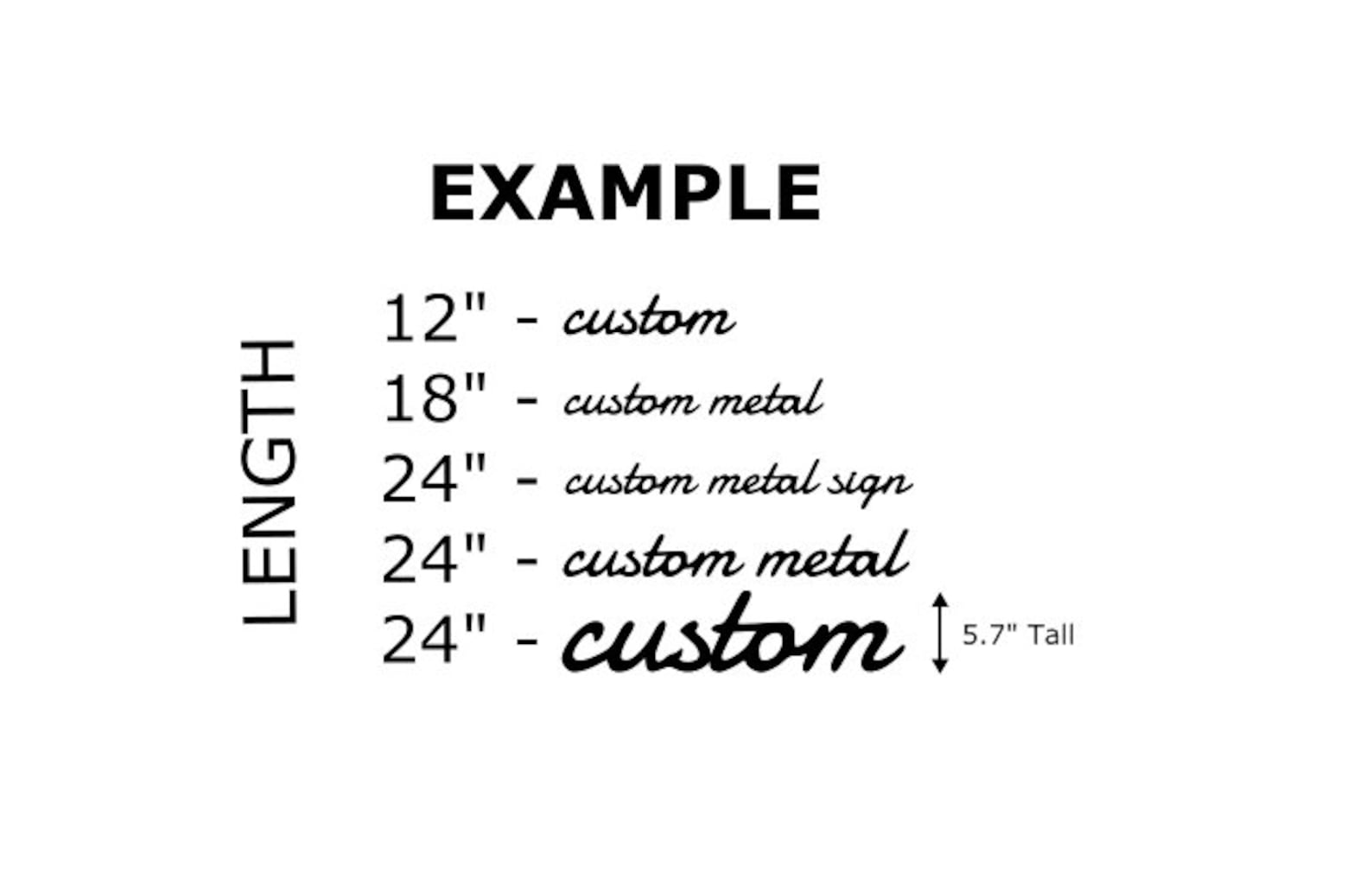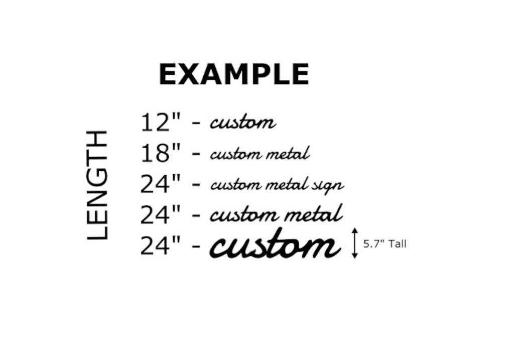 Items are sold by total length. The height will vary depending on the length of the words and total length purchased. If you have any questions about the size please message me before or after placing your order.