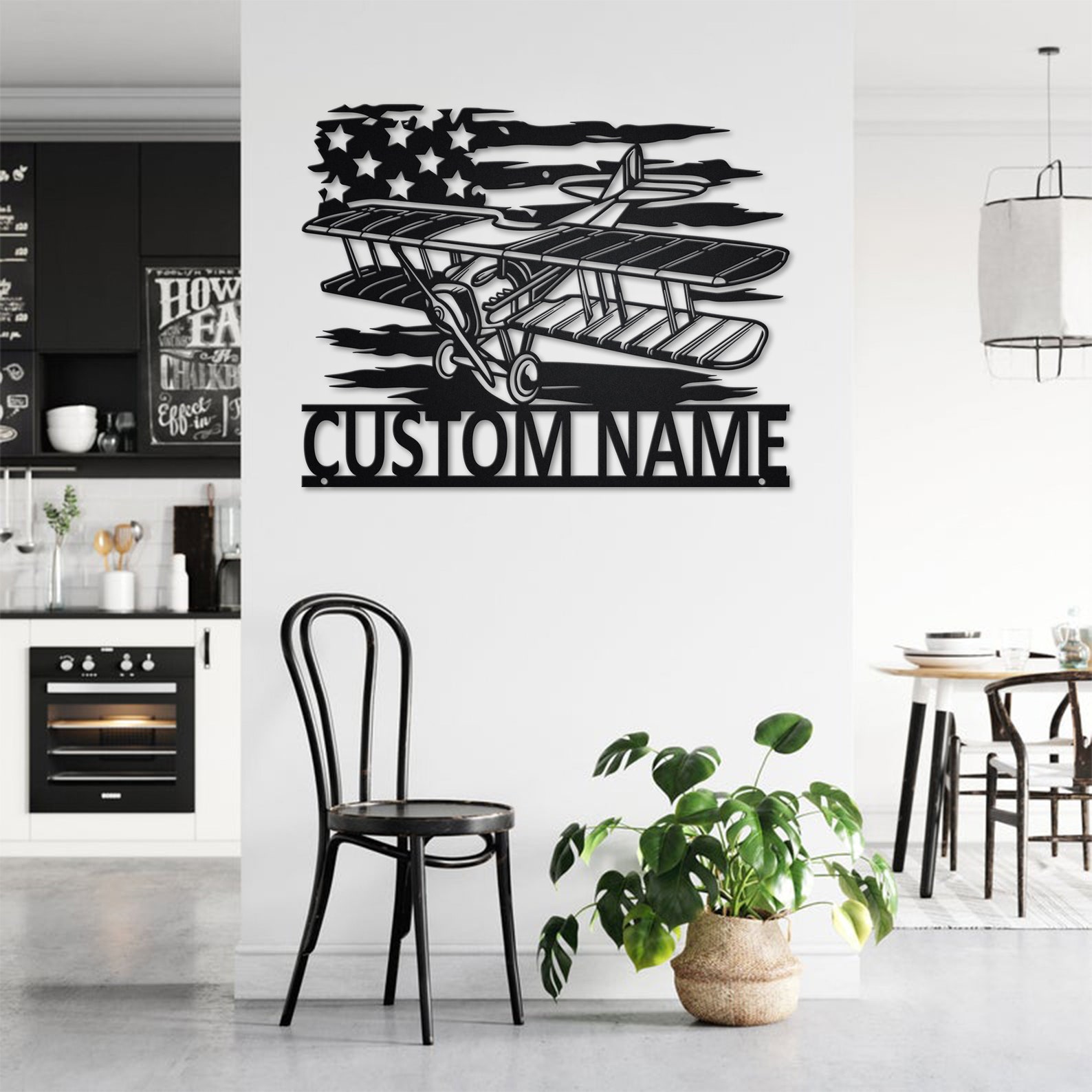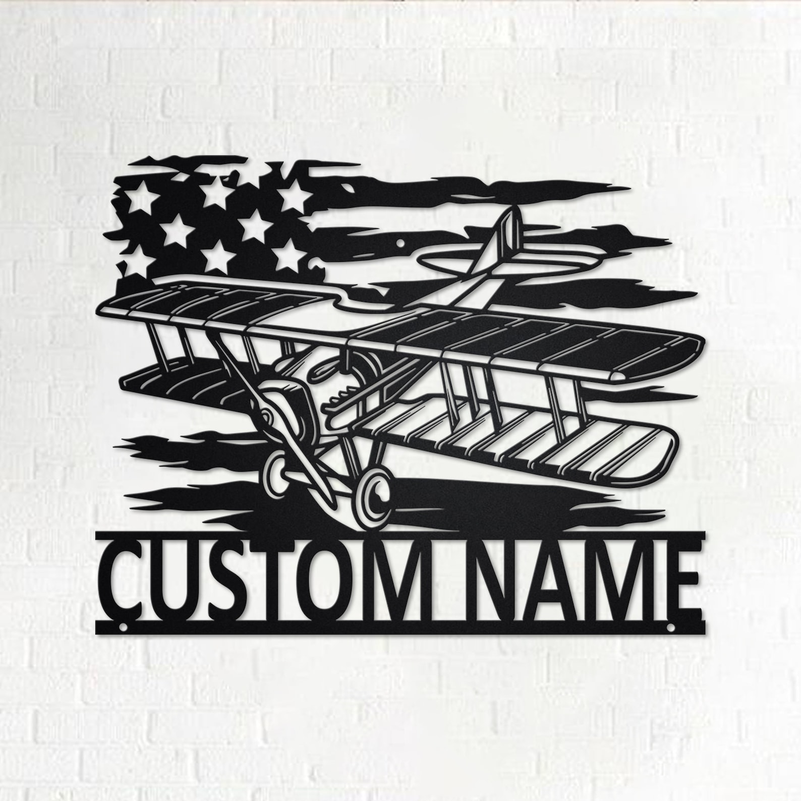 Custom US Biplane Metal Sign with LED – Pilot Room Decoration