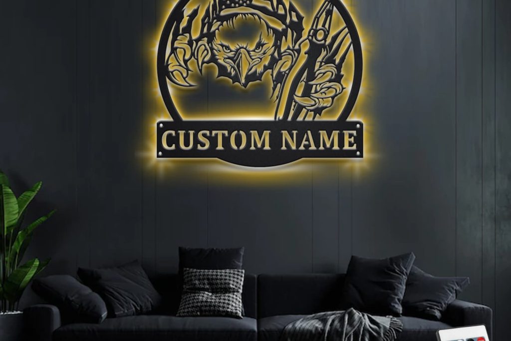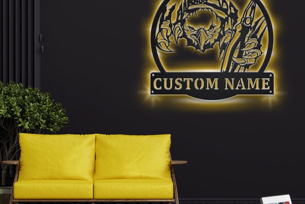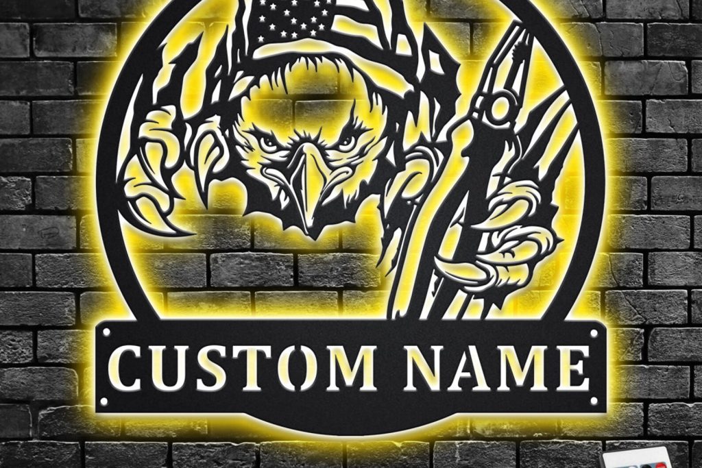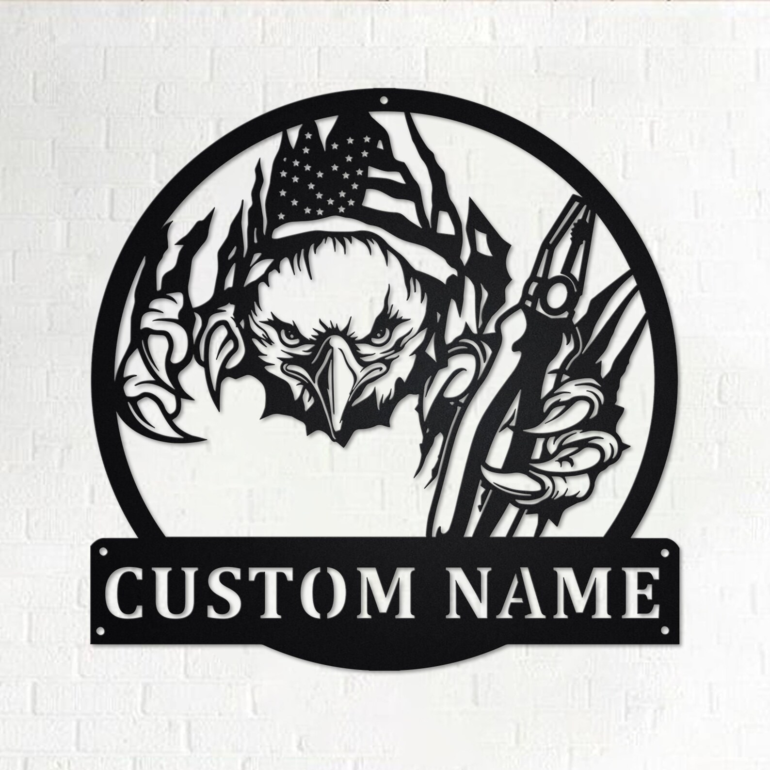 Custom US Eagle Electrician Metal Sign with LED – Decor