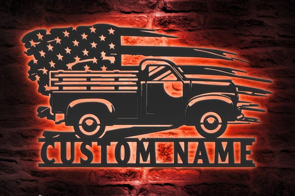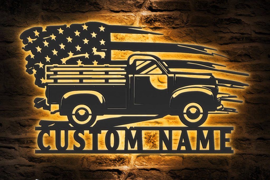 Custom US Farm Truck Metal Sign with LED – Driver Name