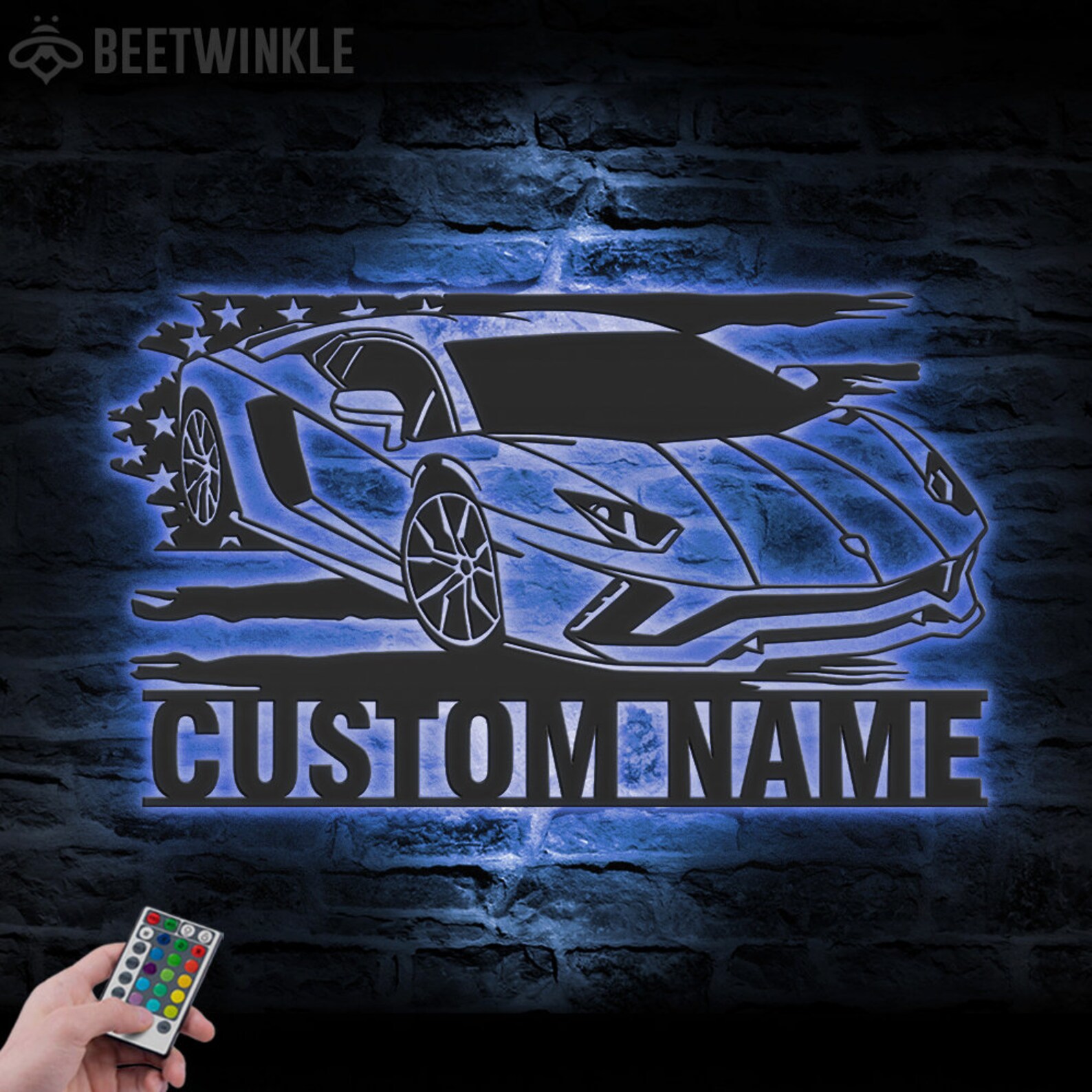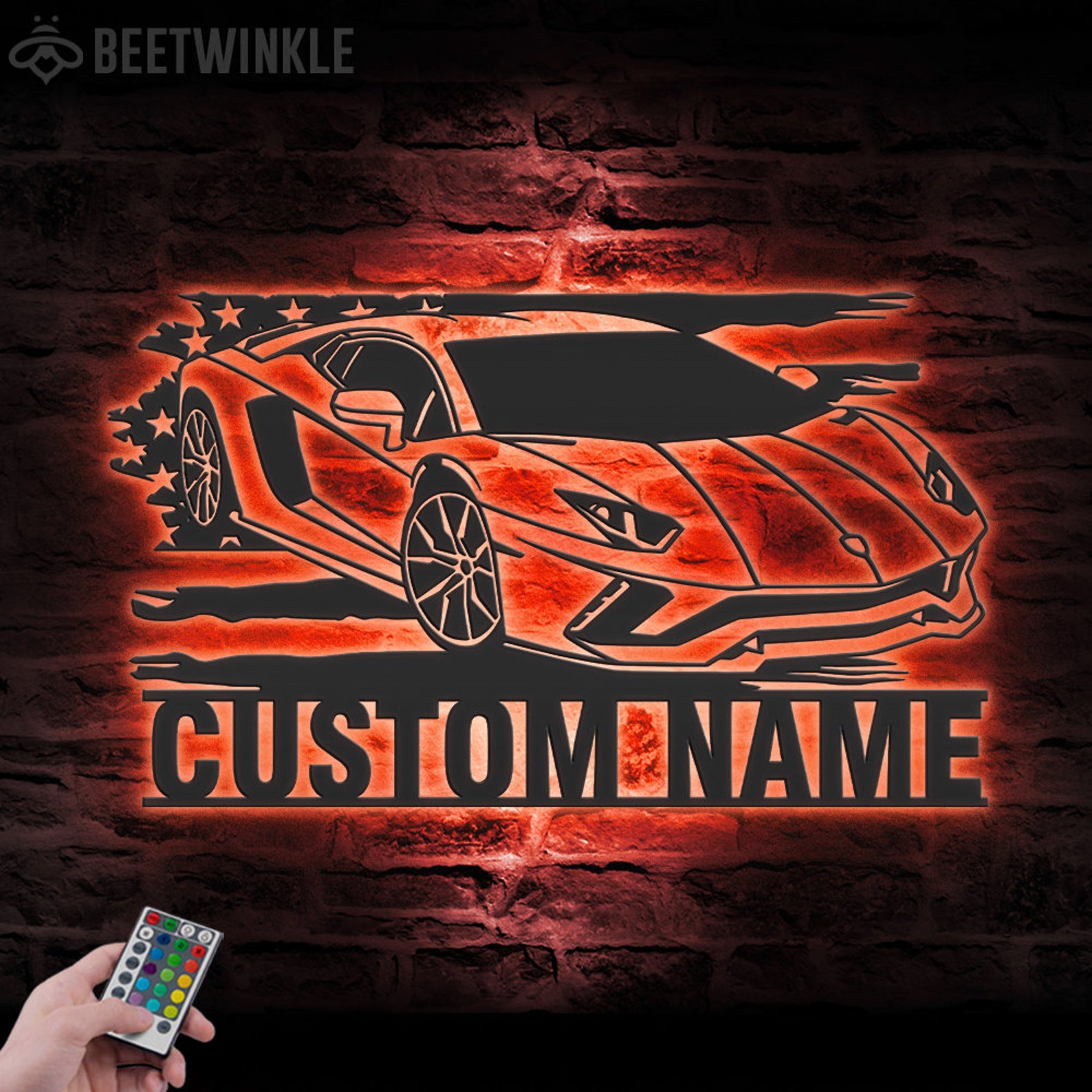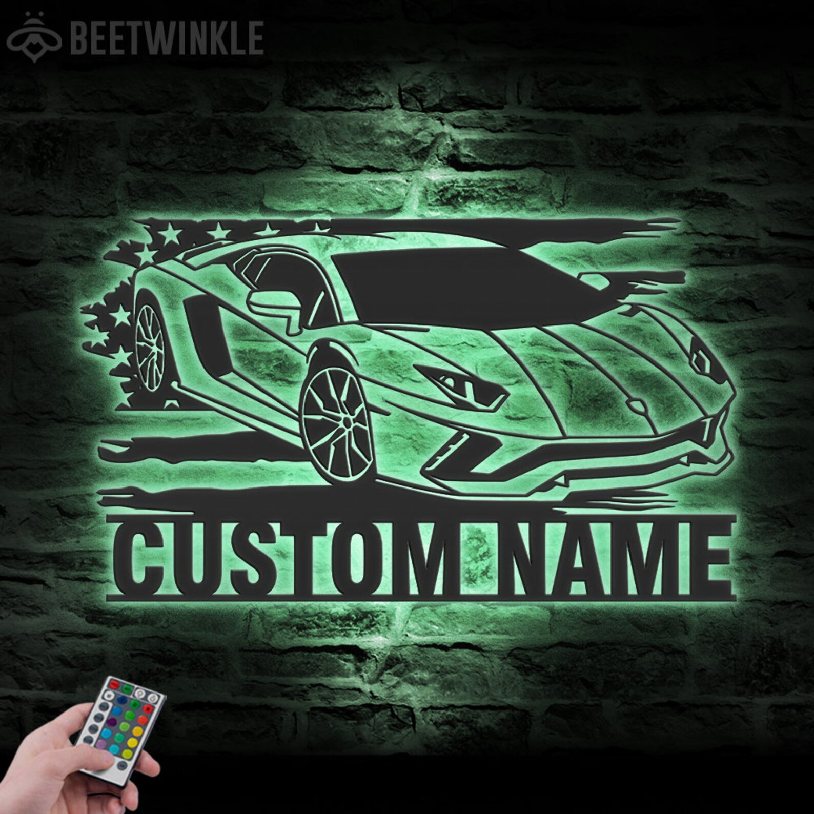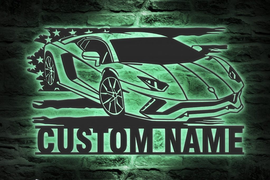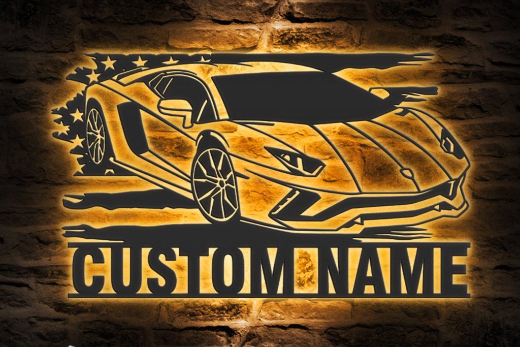 Be the first to review “Custom US Garage Muscle Car Metal Art with LED Light”