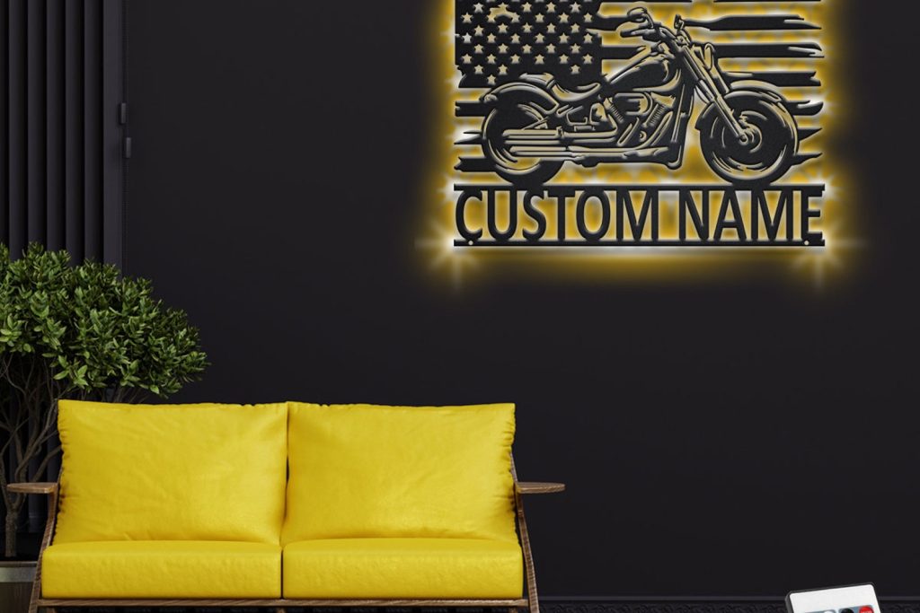 Be the first to review “Custom US Motorcycle Art with LED Light”