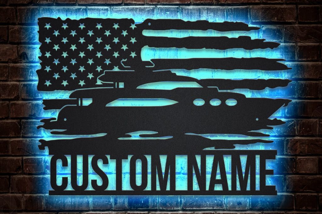 Be the first to review “Custom US Pontoon Boat Metal Sign with LED”