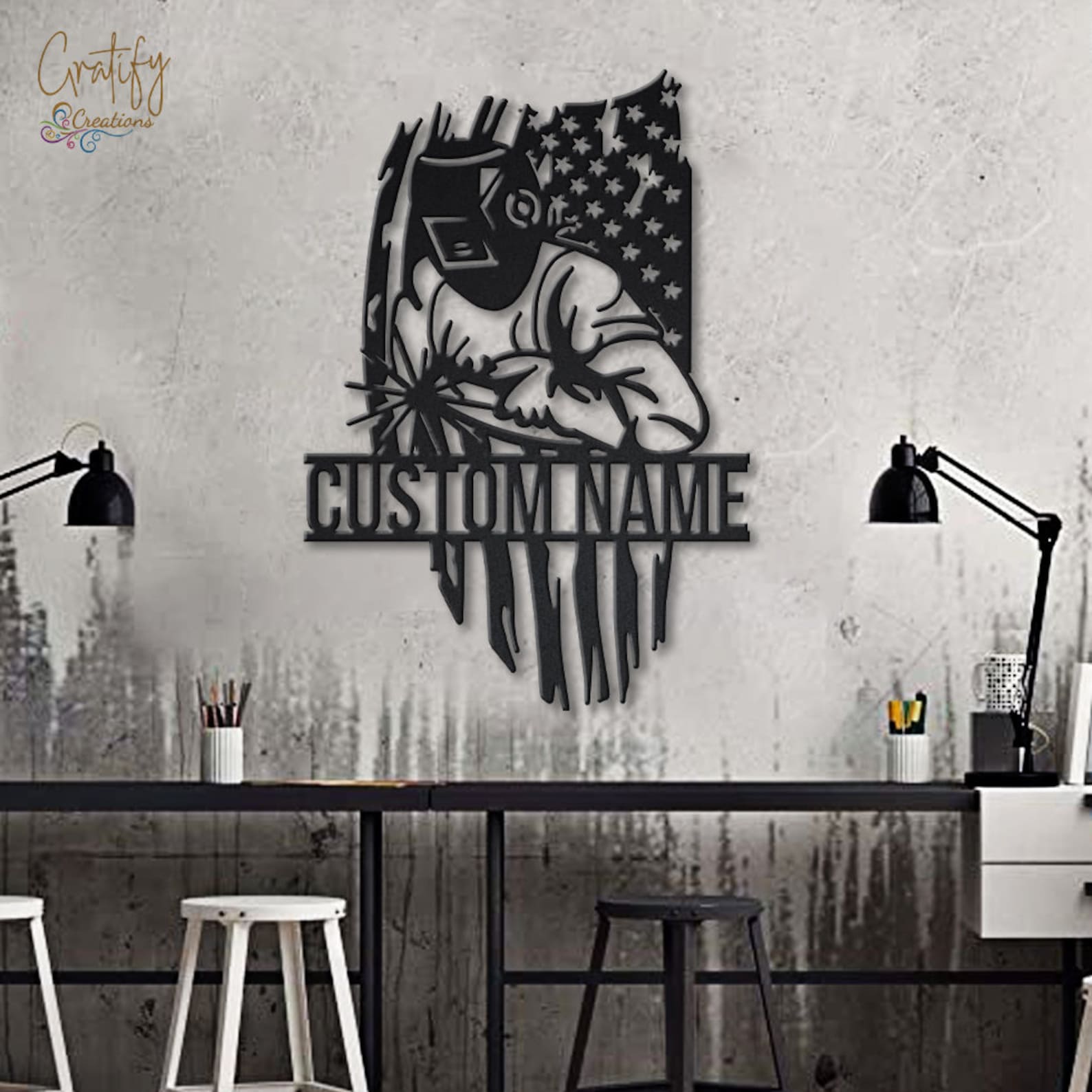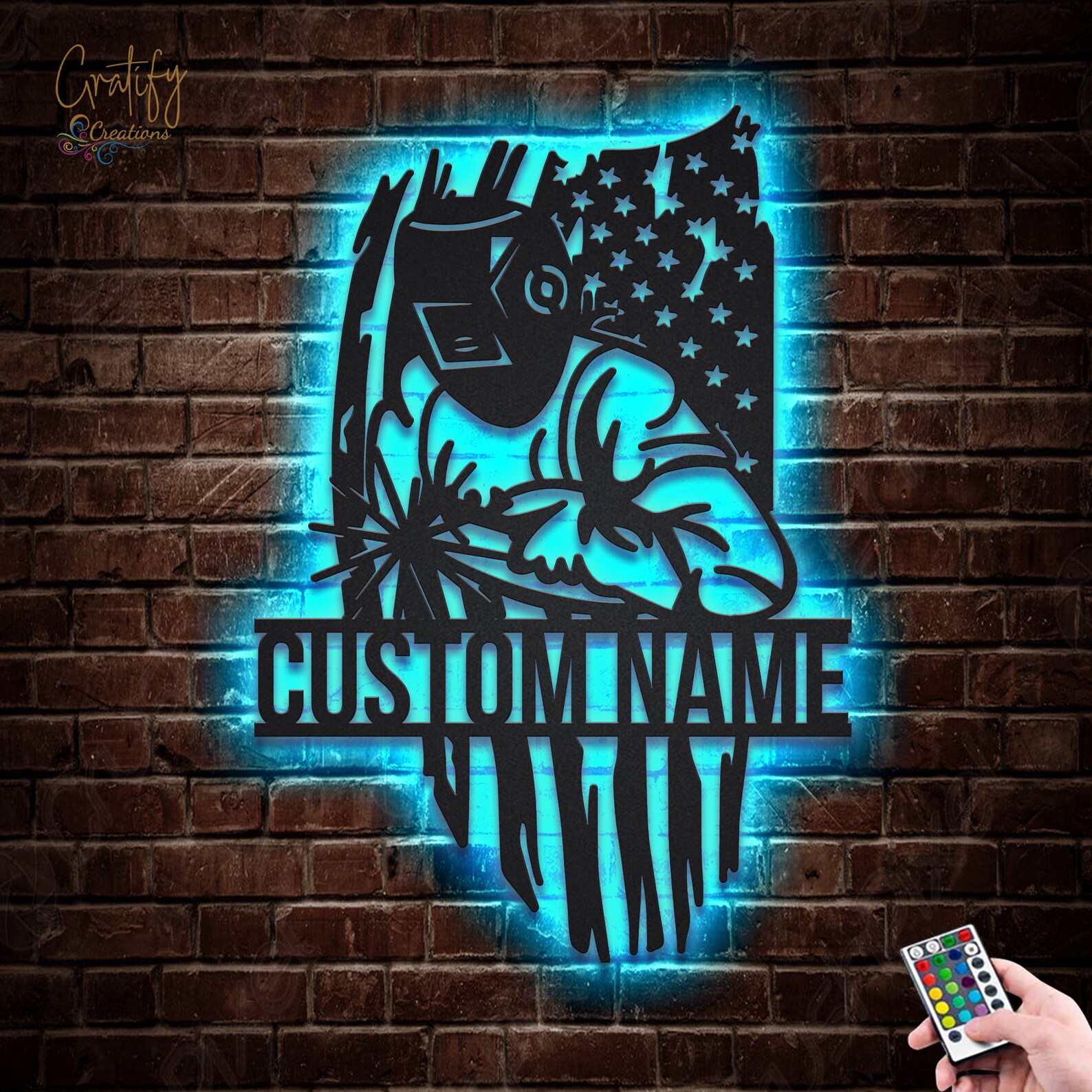 Custom US Welder Metal Sign with LED V3 – Neon Wall Decor