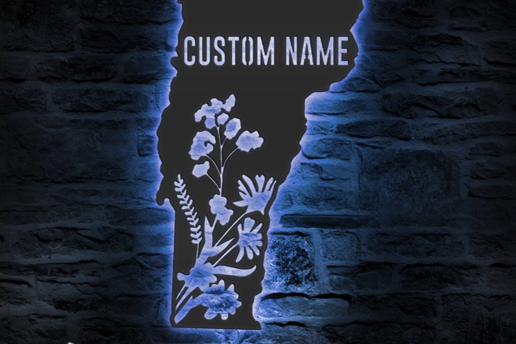 Be the first to review “Custom Vermont Wildflower LED Map – State Wall Art”