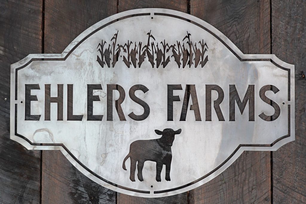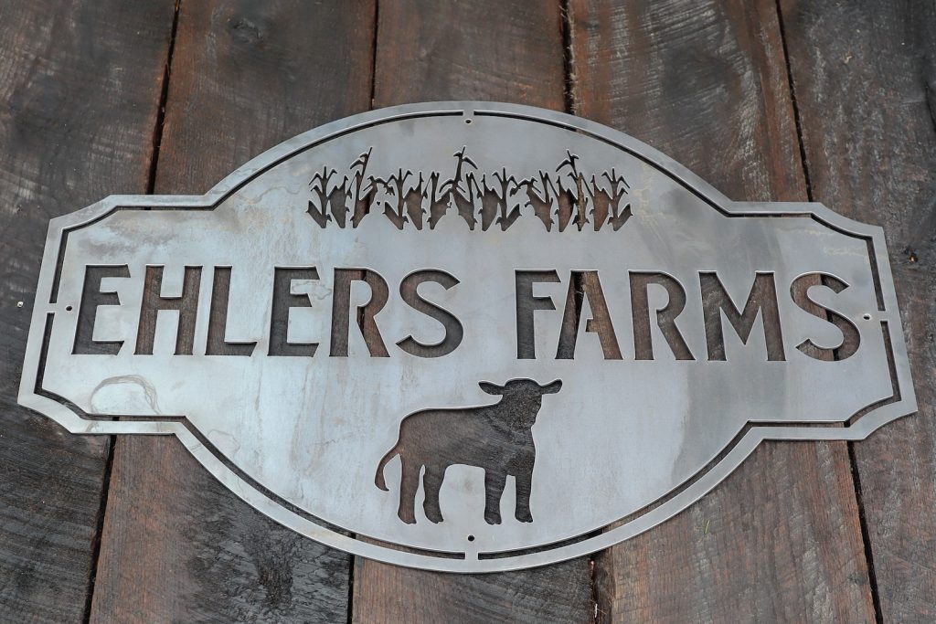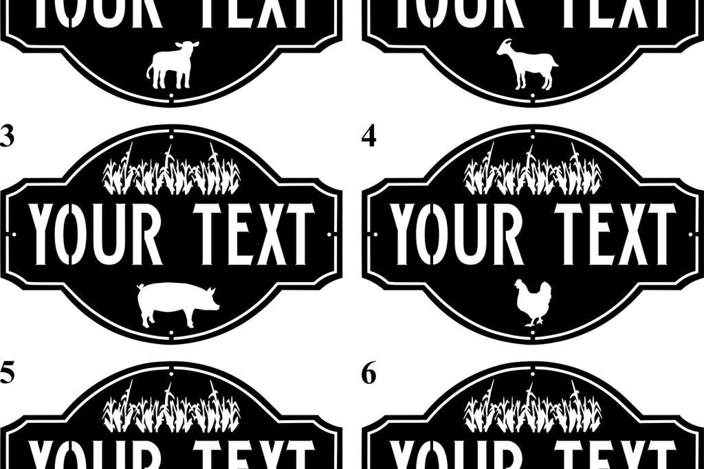 Personalize this sign with one line of text and choose between the following design options: 1. Calf, 2. Goat, 3. Pig, 4. Chicken, 5. Cow, or 6. Tractor.