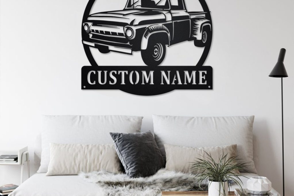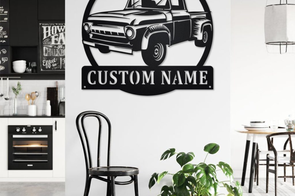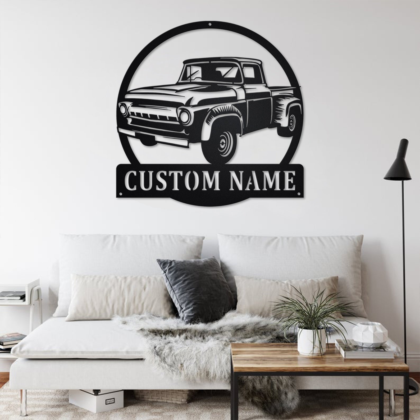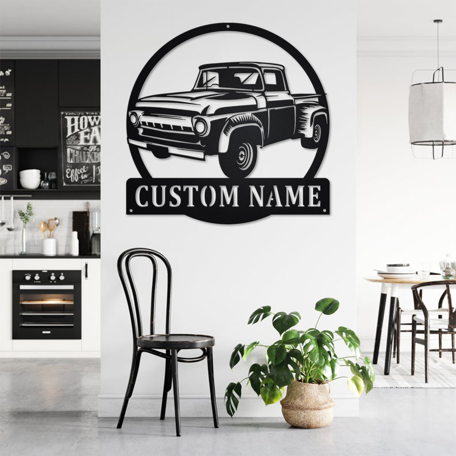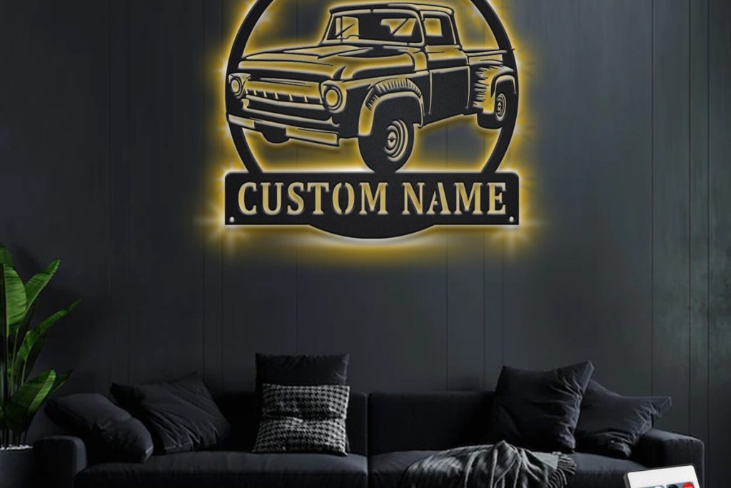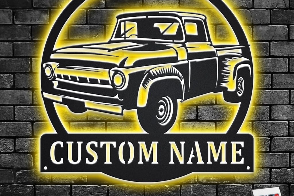 Custom Vintage Truck Metal Sign with LED – Garage Decor