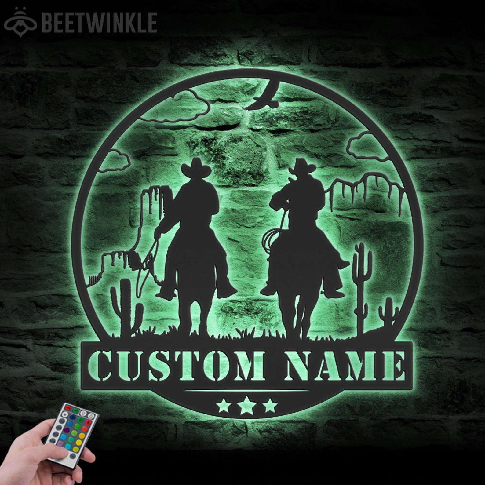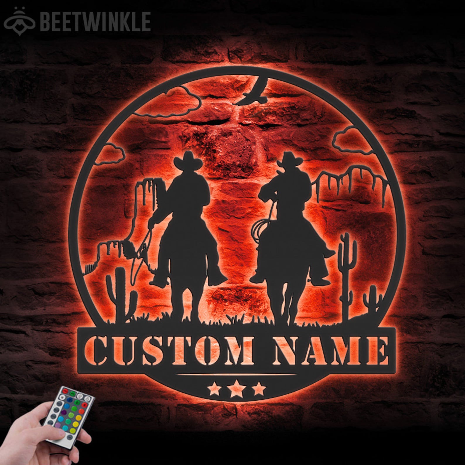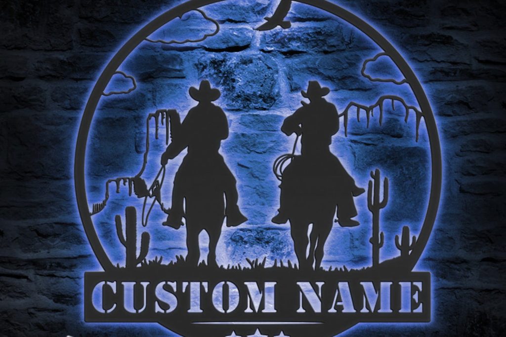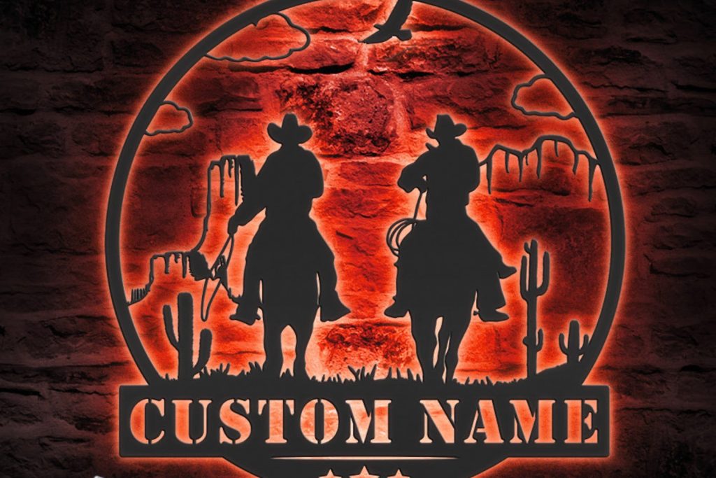 Be the first to review “Custom Western Cowboy Texas Metal Wall Art – LED Light, Personalized Sign”