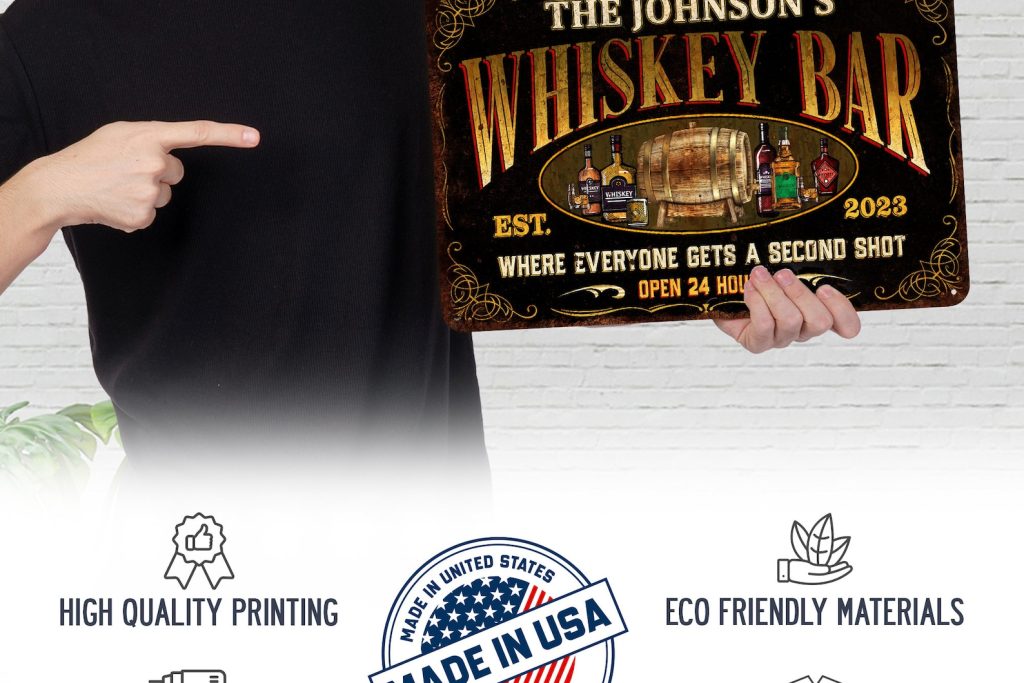 Be the first to review “Custom Whiskey Bar Sign – Vintage Design, Personalized Metal Sign”