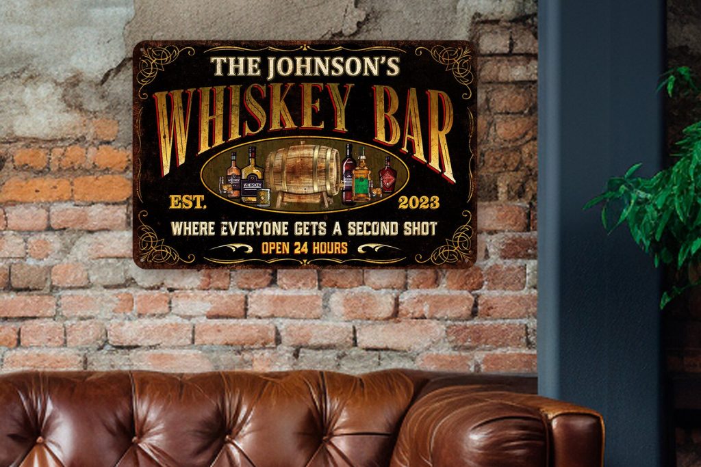 Custom Whiskey Bar Sign Vintage Design Personalized Metal Sign Home Bar Decor Man Cave Sign Pub Tavern Bourbon Gift For Him 108122002165