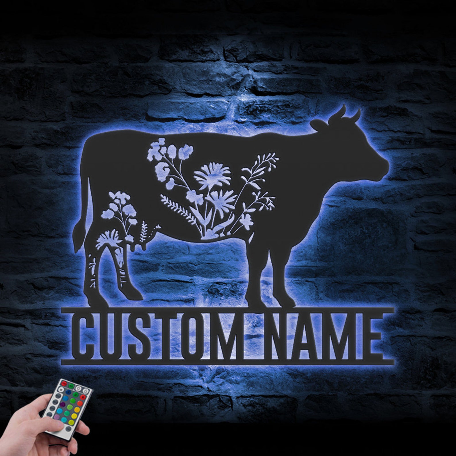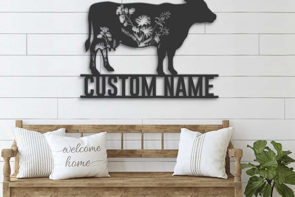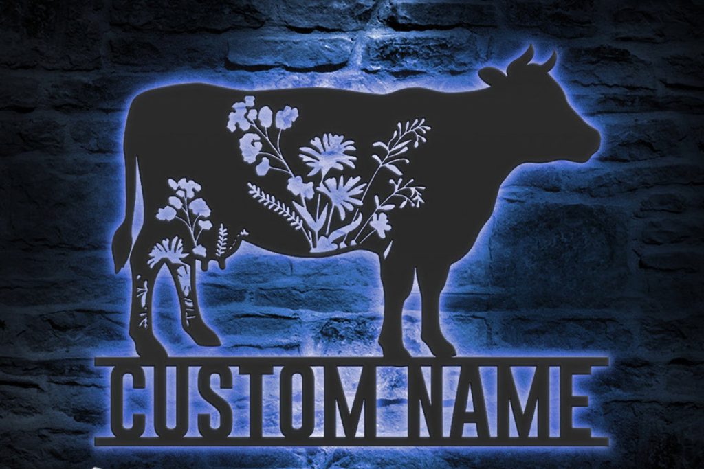 Be the first to review “Custom Wildflower Cow Metal Sign with LED – Farmhouse Decor”