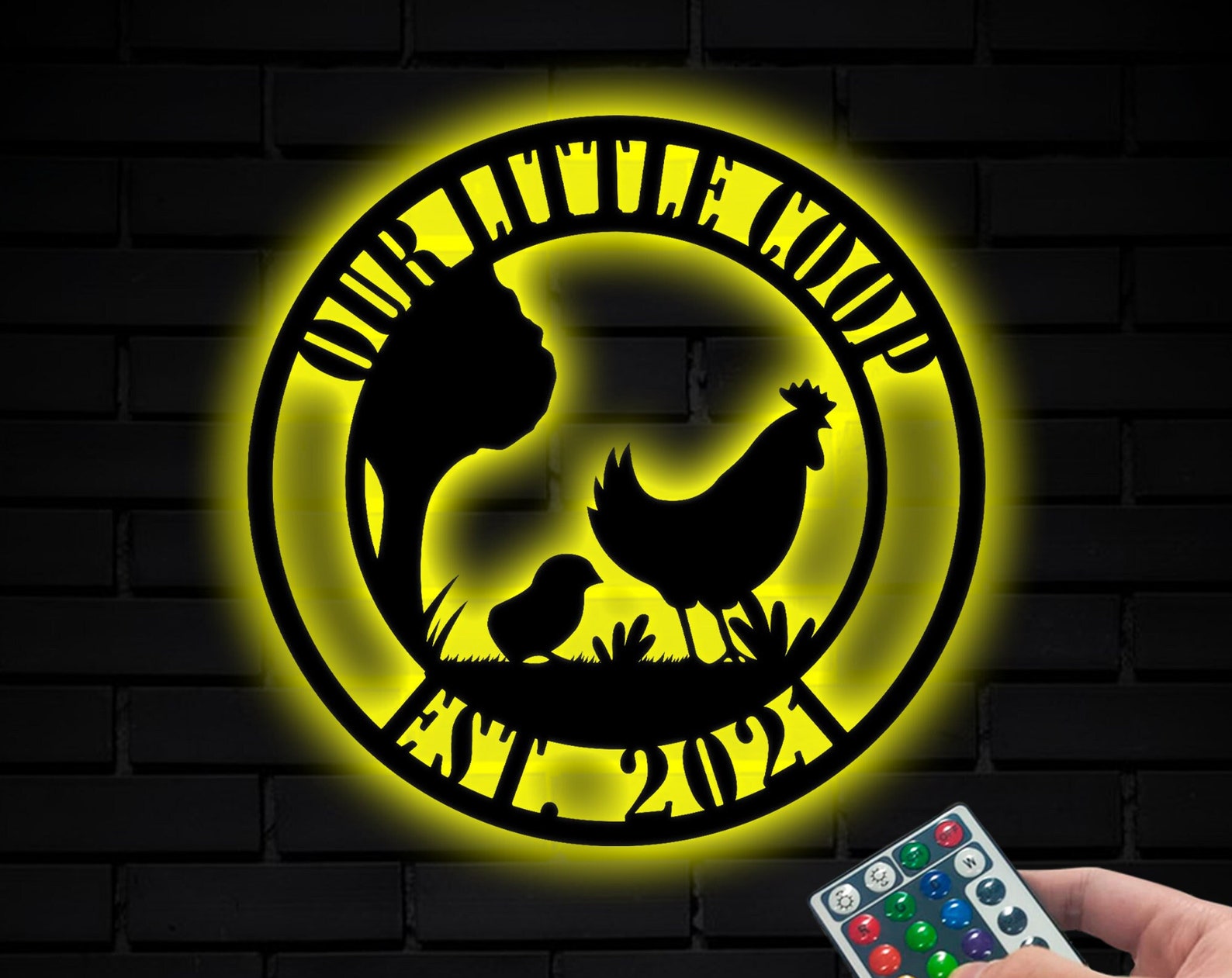 – Remote control: You can use the remote to turn the lights on and off, change the color to one of 16 vibrant colors, adjust brightness, cycle through the colors and set a timer.