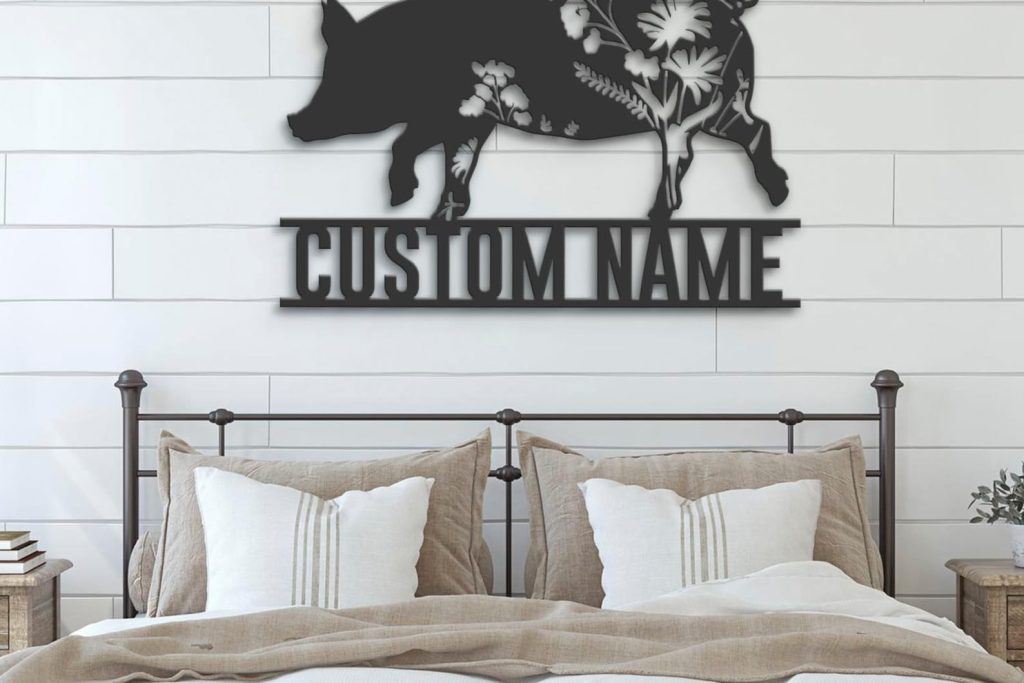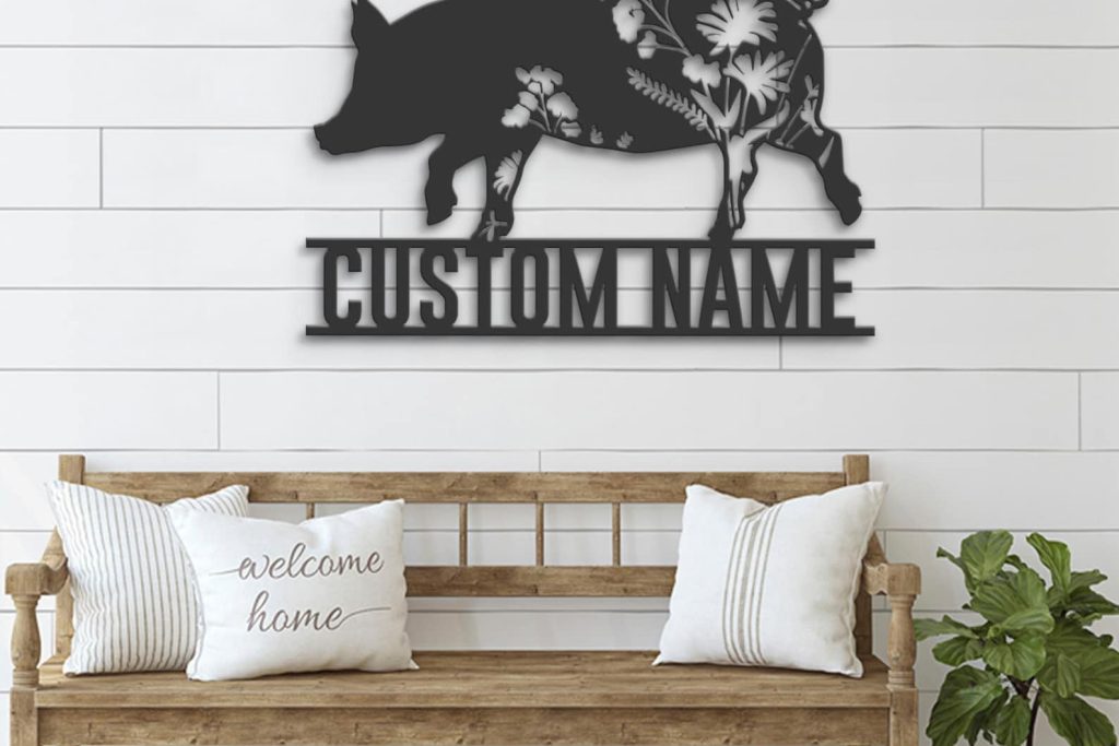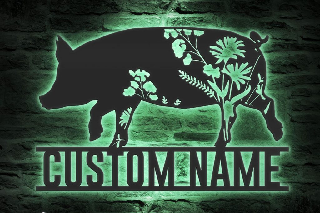 Be the first to review “Custom Wildflower Pig Metal Wall Art with LED Light”