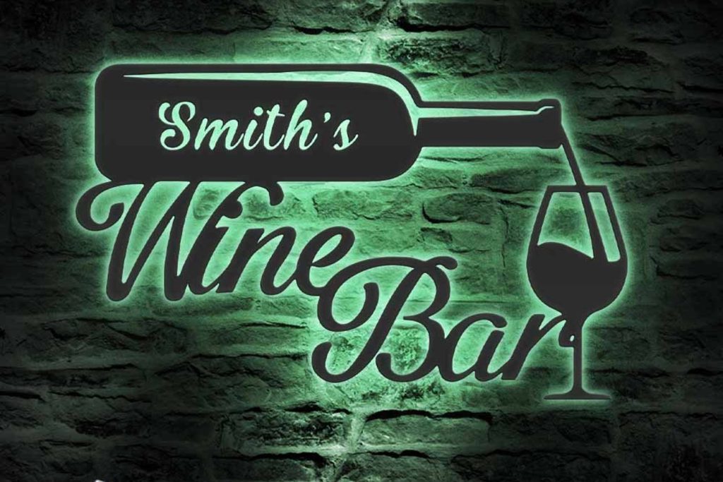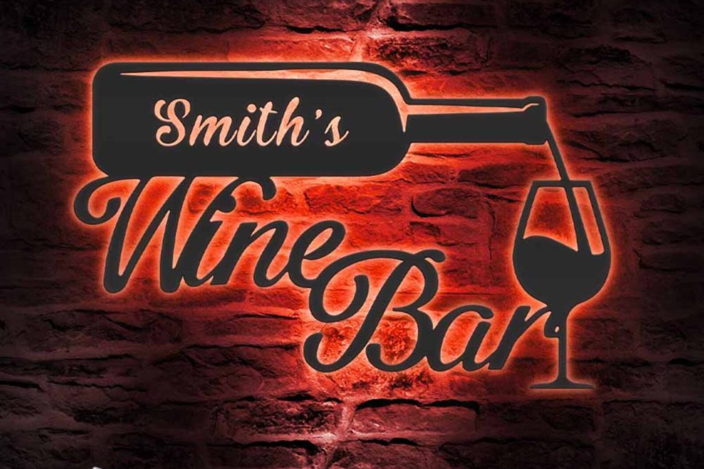 Be the first to review “Custom Wine Bar Metal Art with LED & Drinking Name”