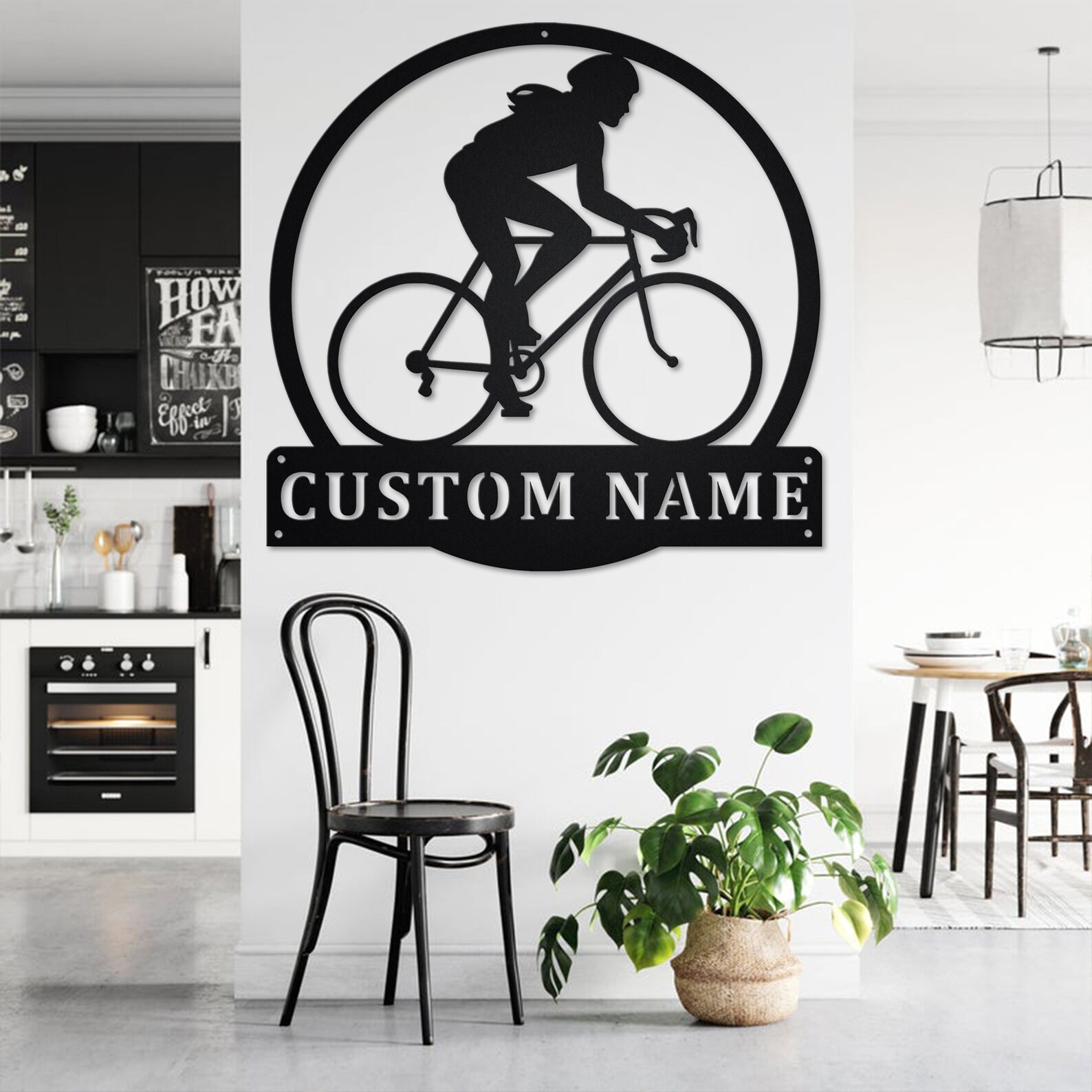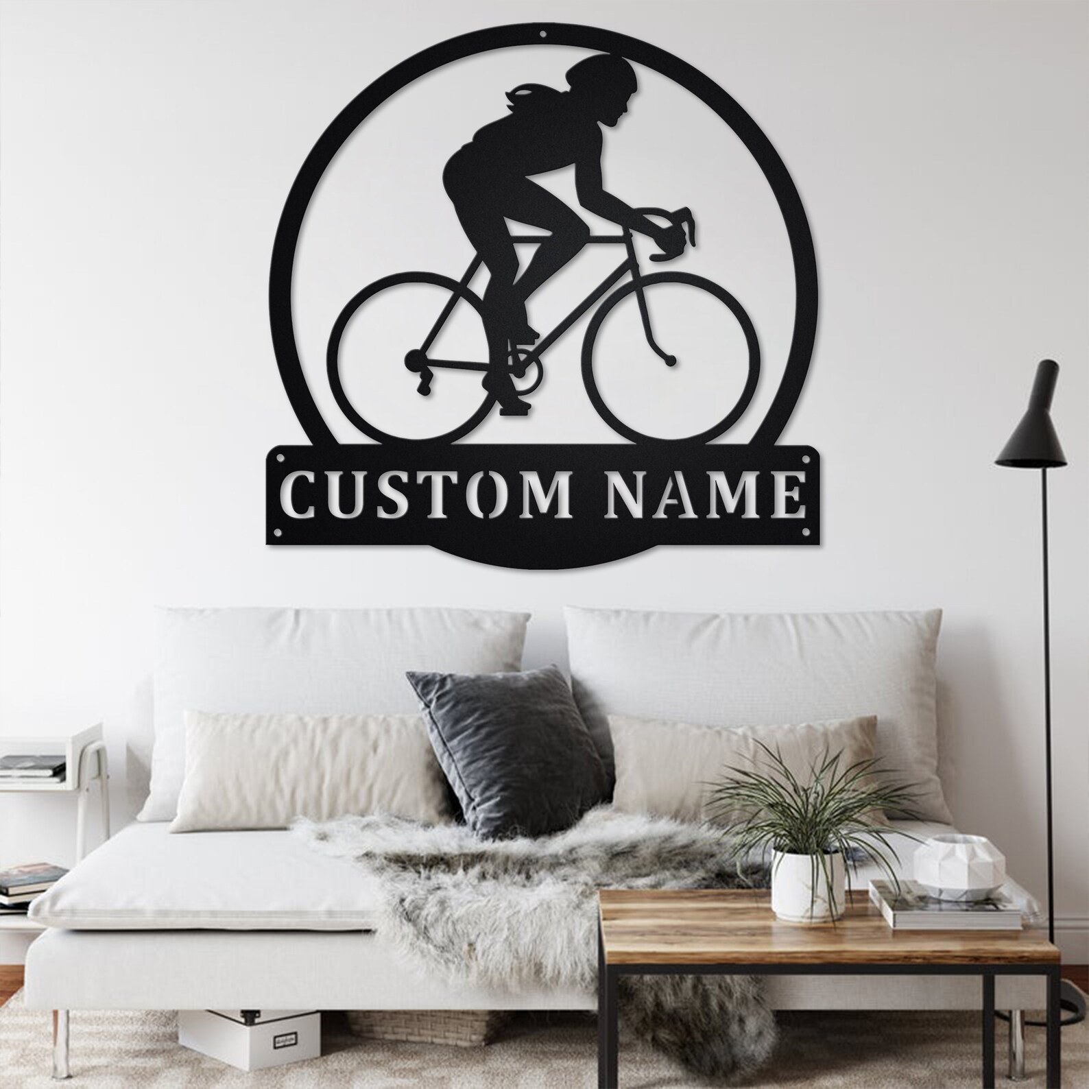 Be the first to review “Custom Women Cycling Metal Wall Art – Personalized Cycling Name Sign”