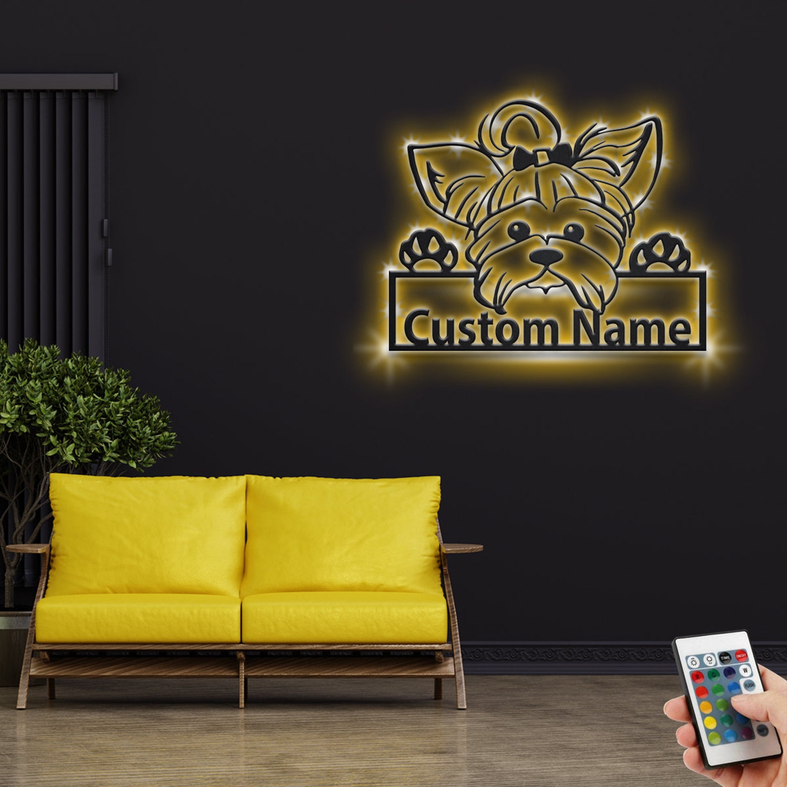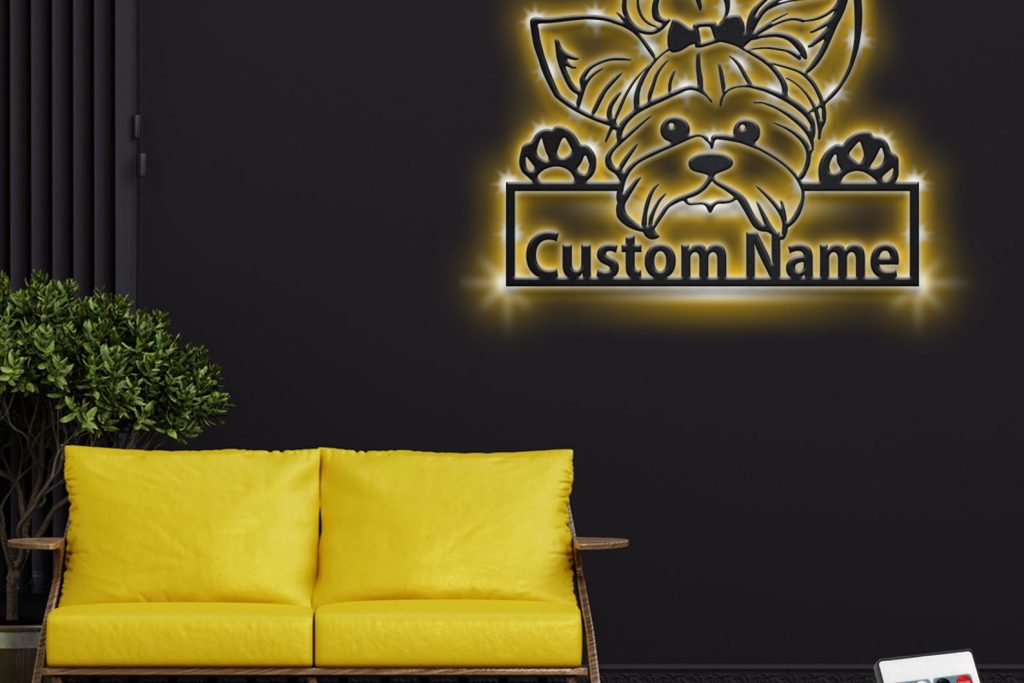Custom Yorkie Metal Sign with LED – Room Decoration