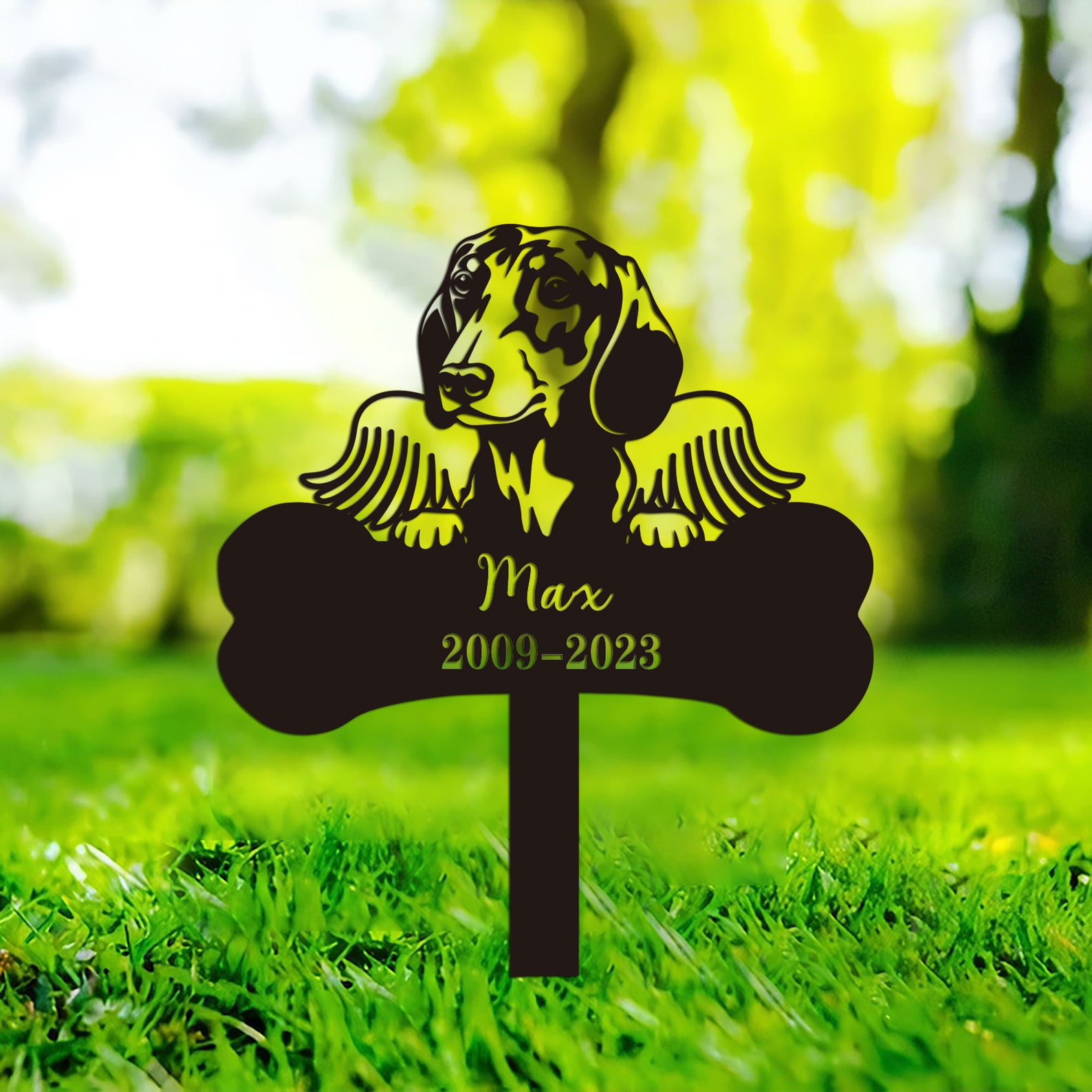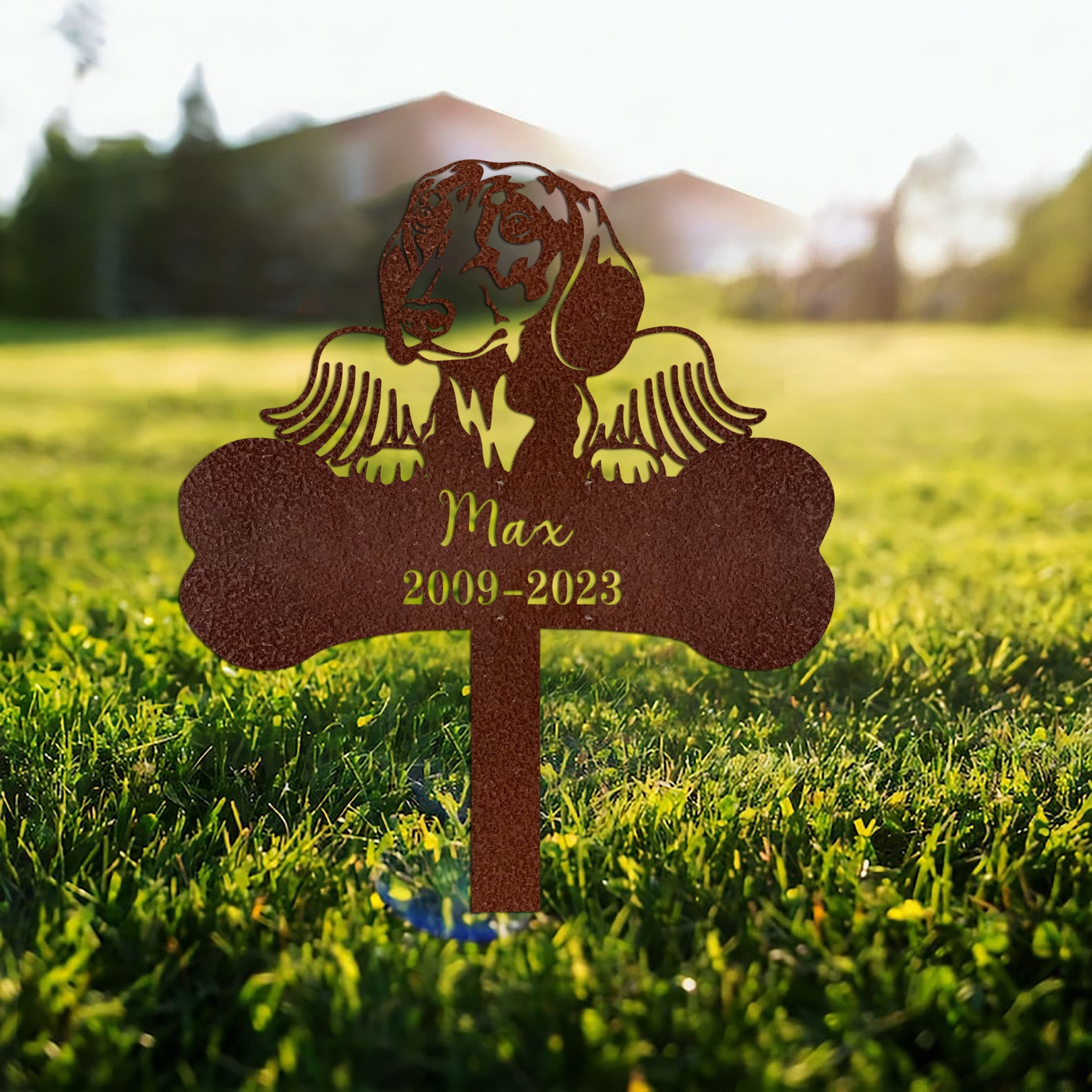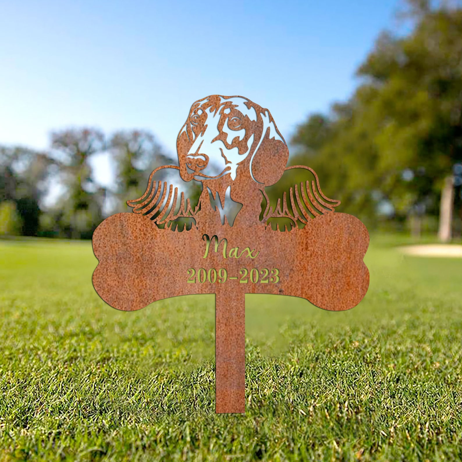 Hi! Welcome! U have come to the right shop for all kinds of beautiful special rustic metal art work. Our metal sign is weatherproof and lightweight, which makes it perfect to decorate inside as well as outside of your home. Can be custom your dog9;s name. A perfect art work for memorizing your loss of dogs.