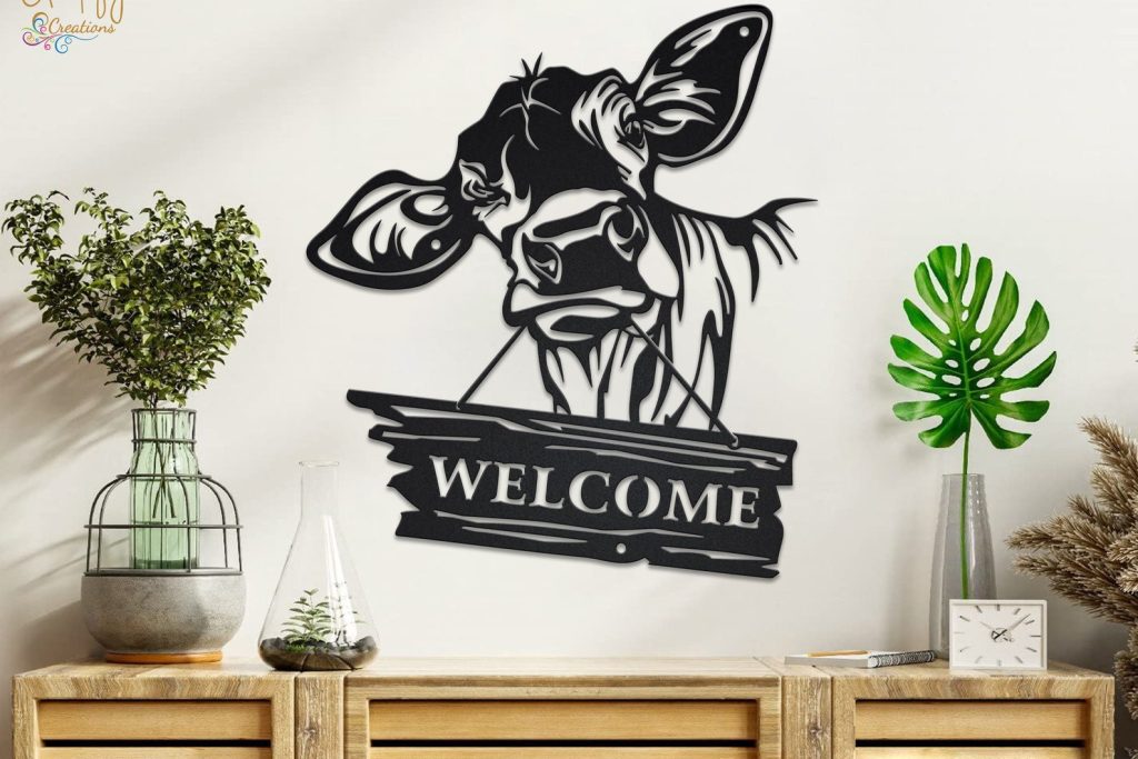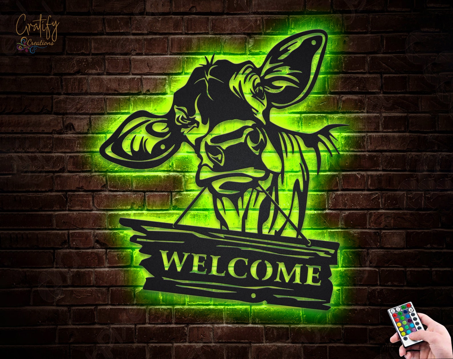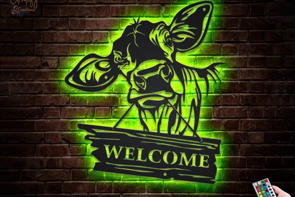 Dairy Cow Metal Sign with LED – Nursery Farm Decor