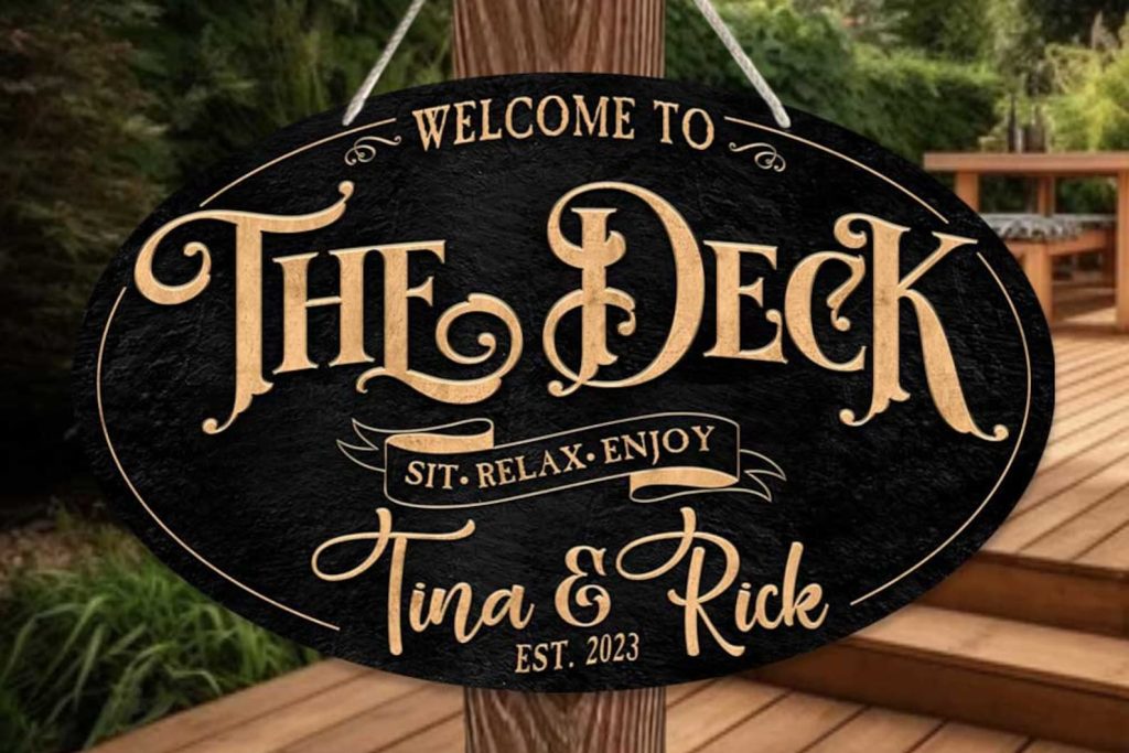 Welcome to your deck retreat, where a cozy and welcoming atmosphere is just a step away, thanks to our Oval Metal Deck Sign. We9;ve poured our heart into crafting this charming sign, ensuring every detail is perfect to turn your deck into a warm haven of hospitality. Picture this elegant oval metal deck sign enhancing your entryway a touch of grace that instantly brings a welcoming vibe.