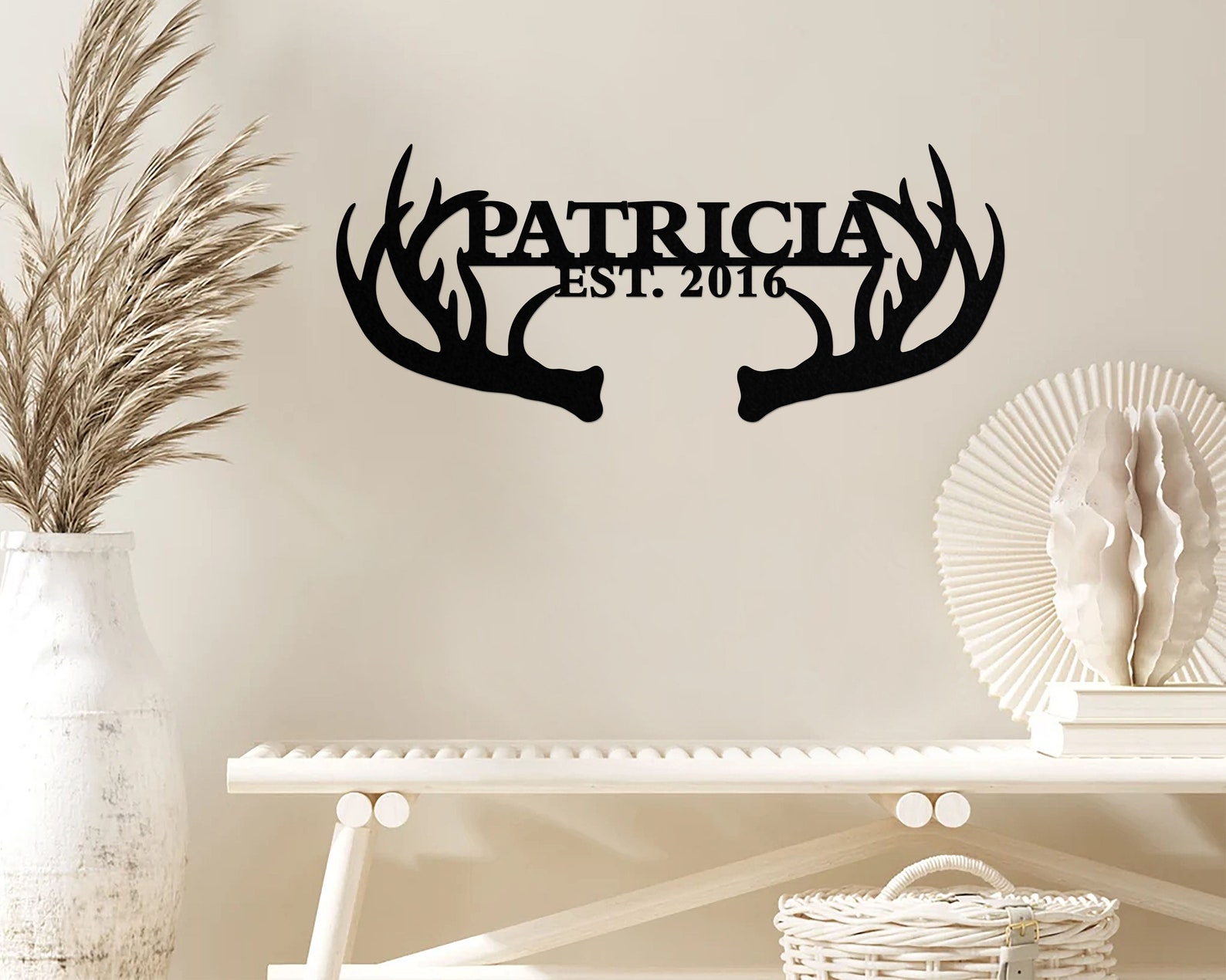 Deer Antler Family Sign – Rustic Farmhouse Decor & Gift