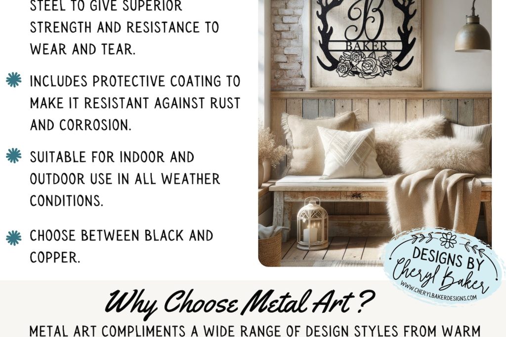 Crafted from tough 18-gauge steel and finished with a powder coat. This powder coating not only looks great but protects your metal from rust allowing you to display it indoors or outdoors in all weather conditions.