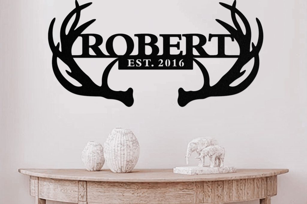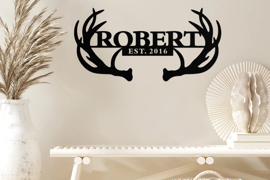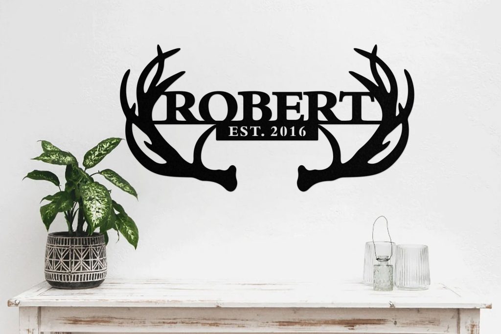 Deer Antler Sign – Personal Metal Family Decor, Gift