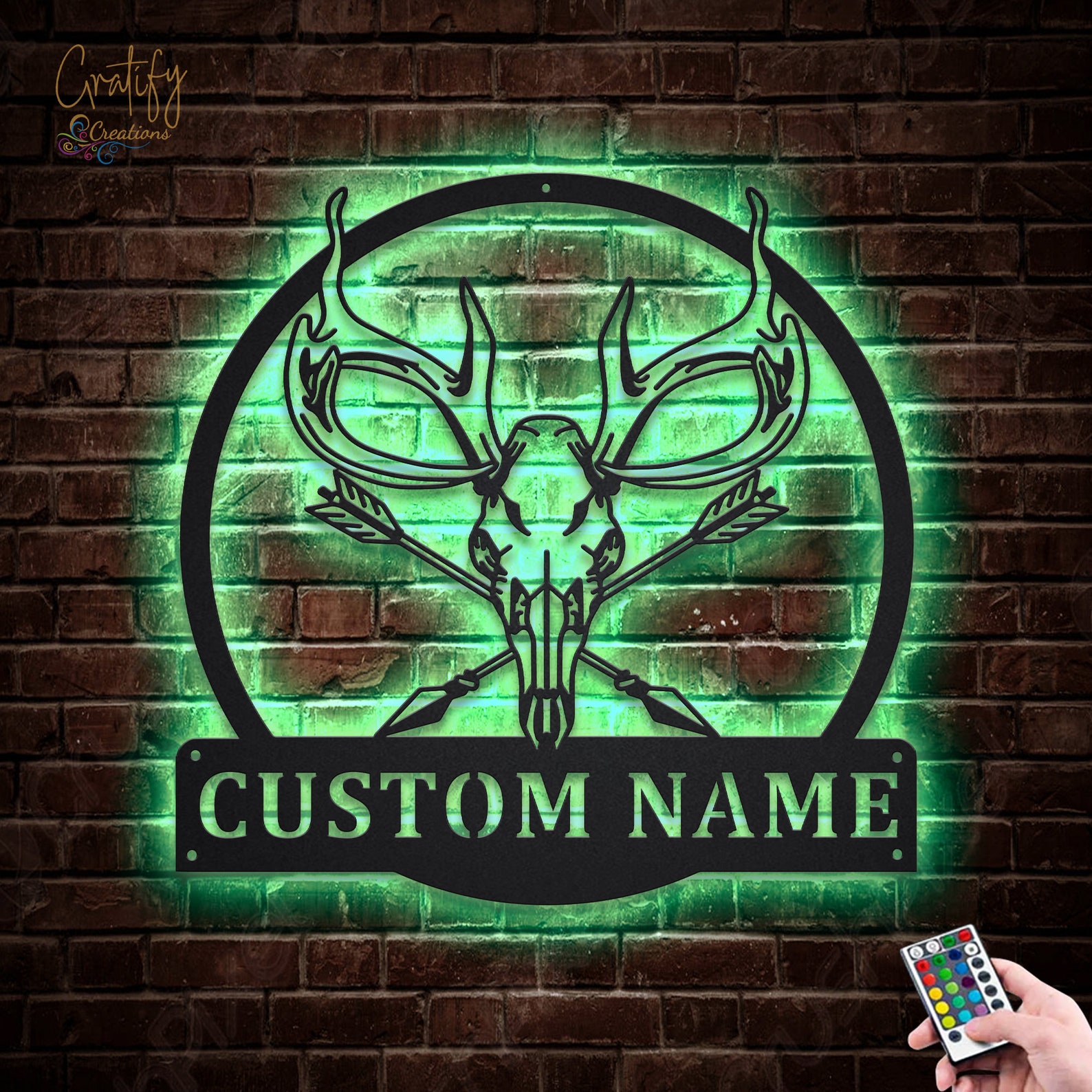 Revamp your hunting cabin with our Custom Deer Hunting Monogram Metal Sign that comes with LED lights. It9;s a perfect addition to your collection of hunting memorabilia. Made with high-quality metal, this sign features a stylish deer design that will surely elevate the aesthetics of your space.