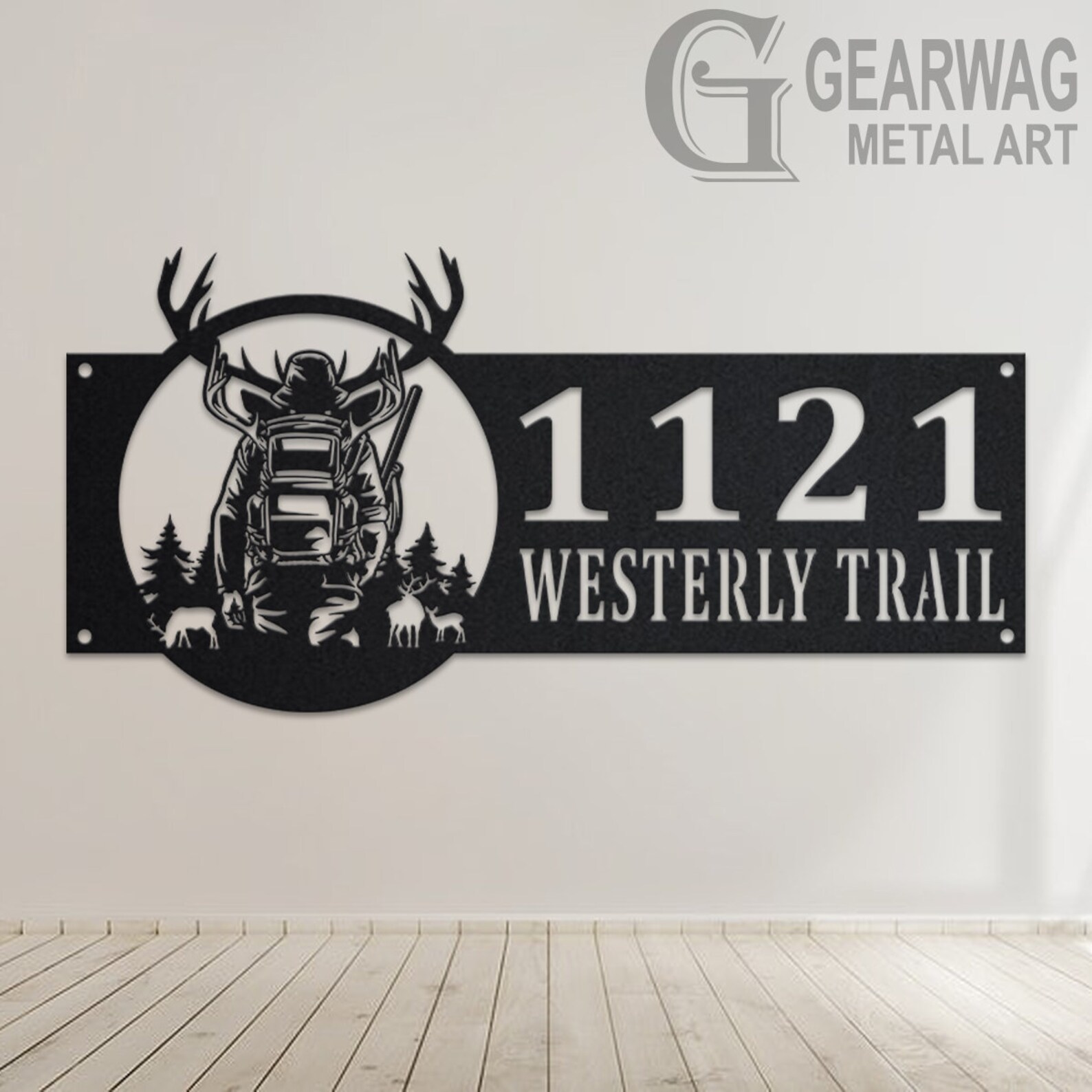 Deer Hunter Address Sign – Custom Metal Plaque Decor