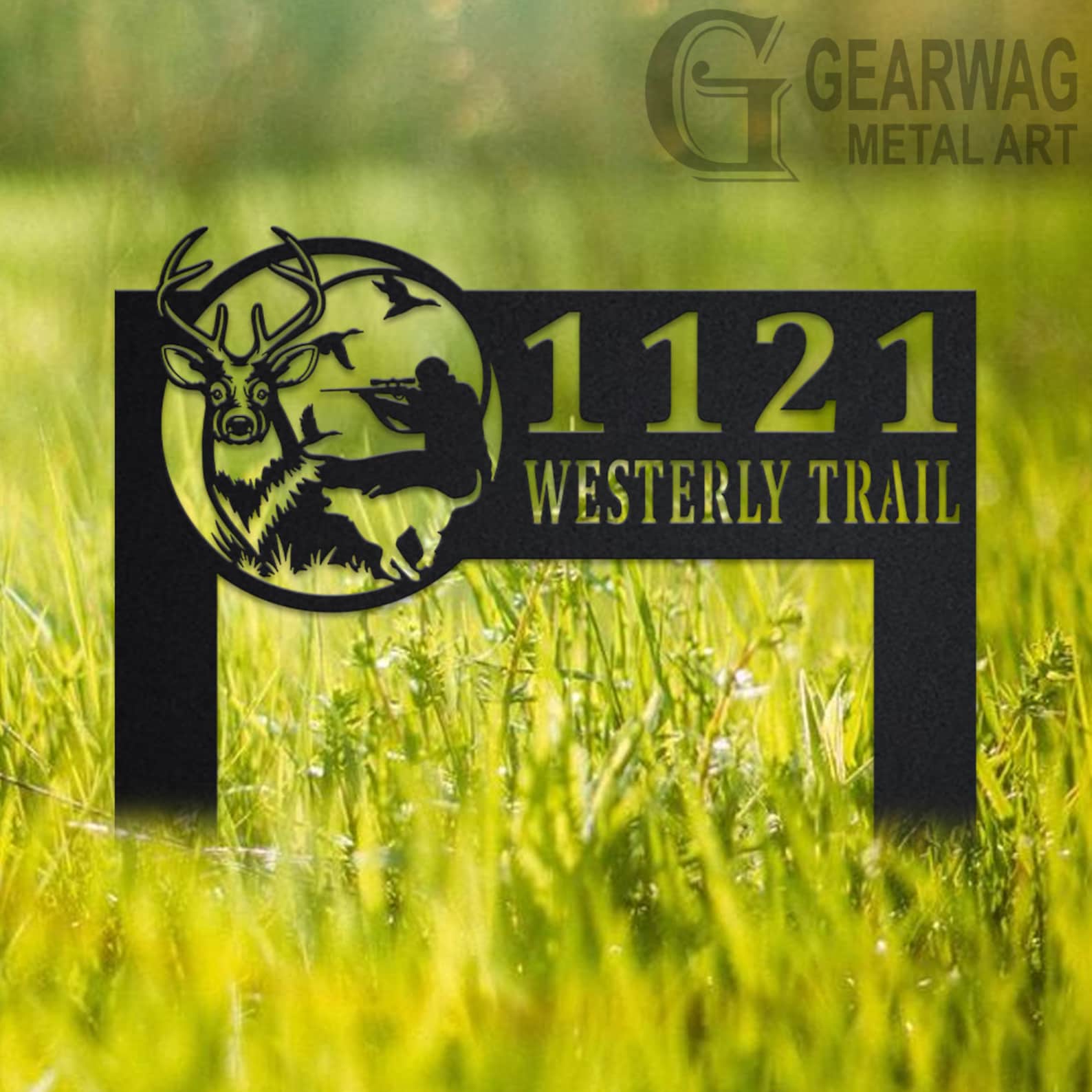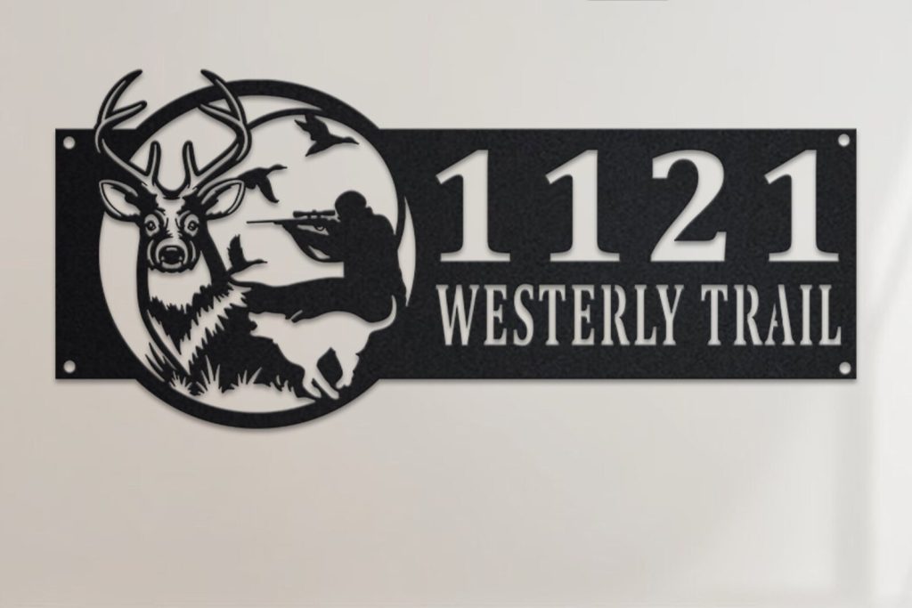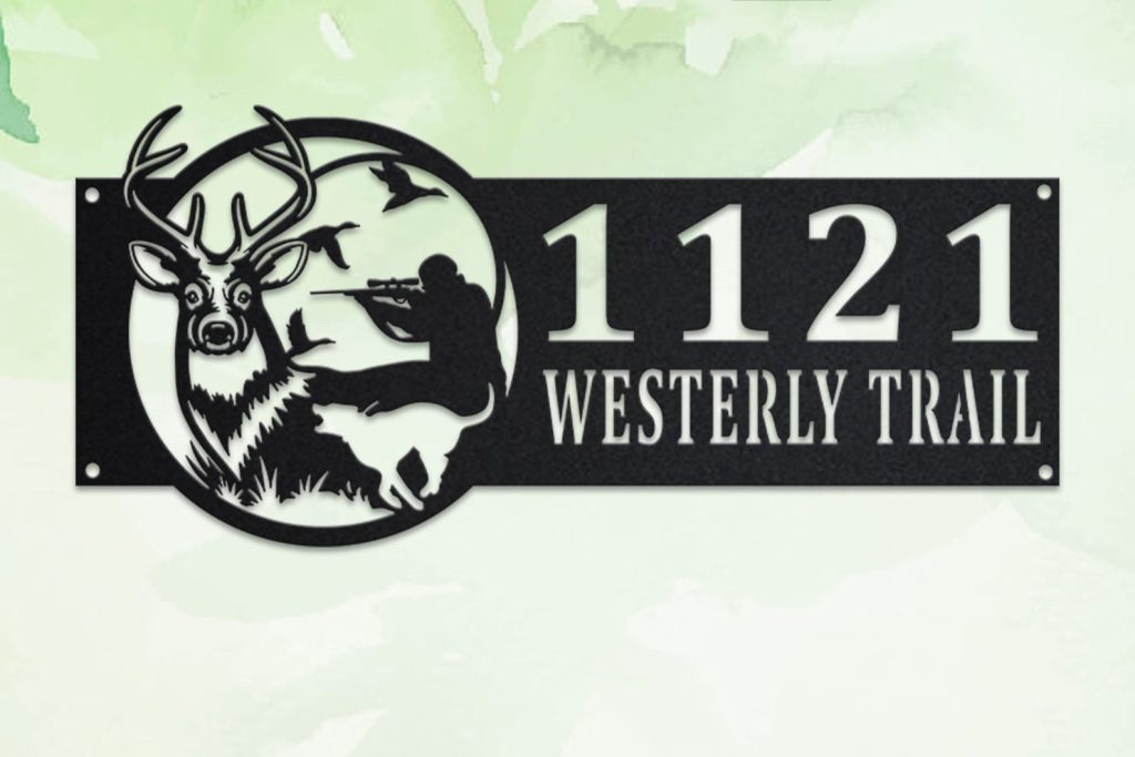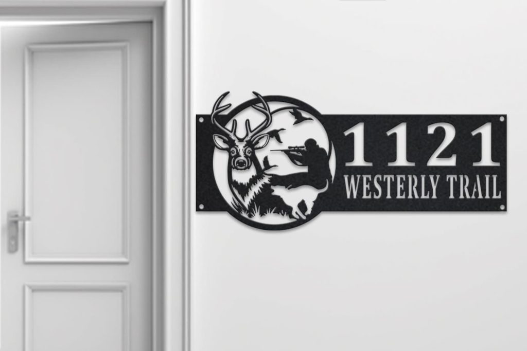 Deer Hunter Address Sign – Personalized Metal Hunting Plaque