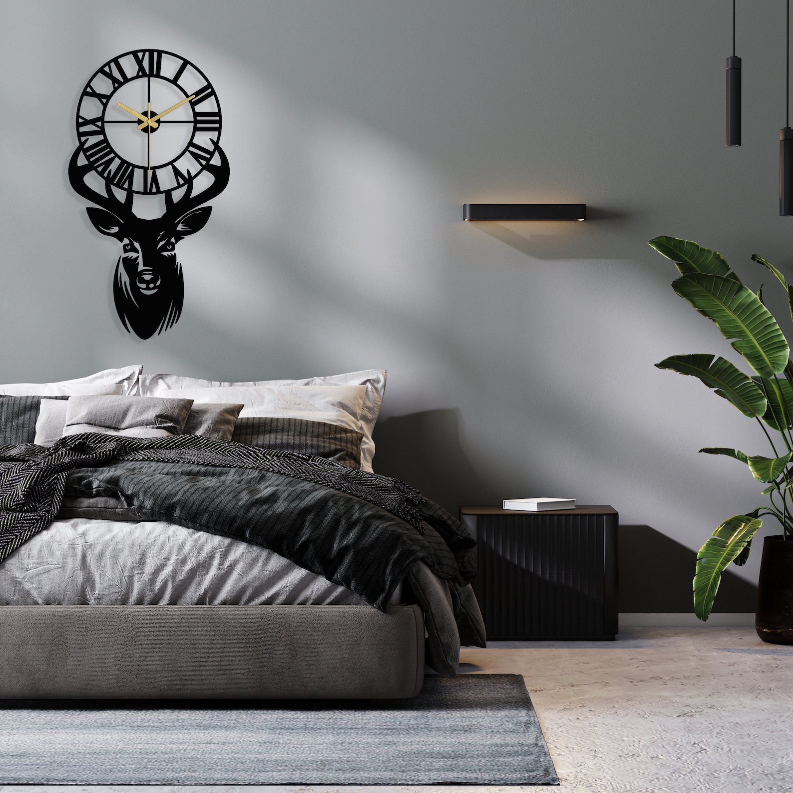 Deer Metal Wall Clock, Black Metal Home Decor, Wall Art